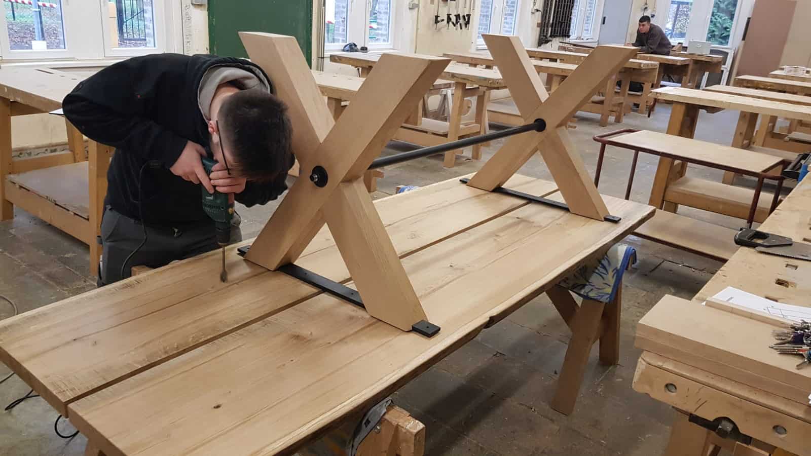 Les élèves de 7°P. restauration et création de meubles viennent de terminer la construction d’une table de salle à manger, ainsi qu’un bahut contemporain. Félicitations aux élèves pour cette belle création !!!