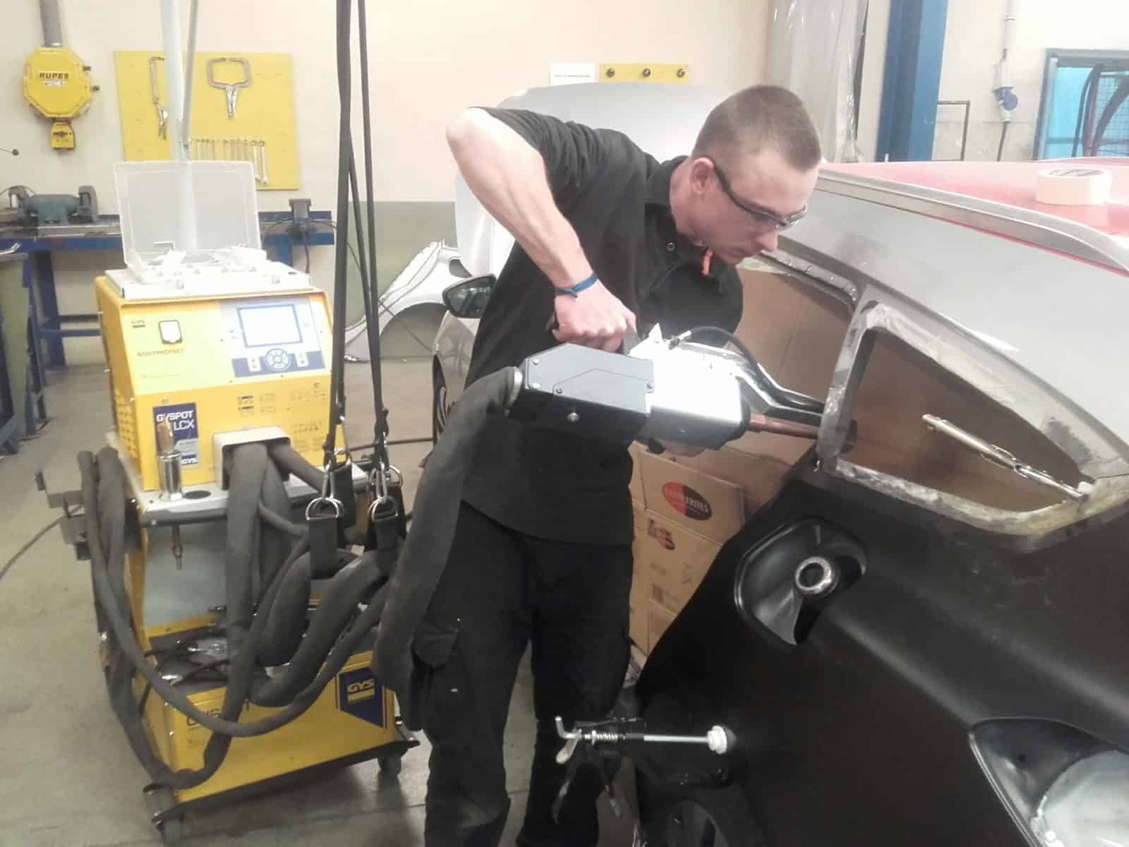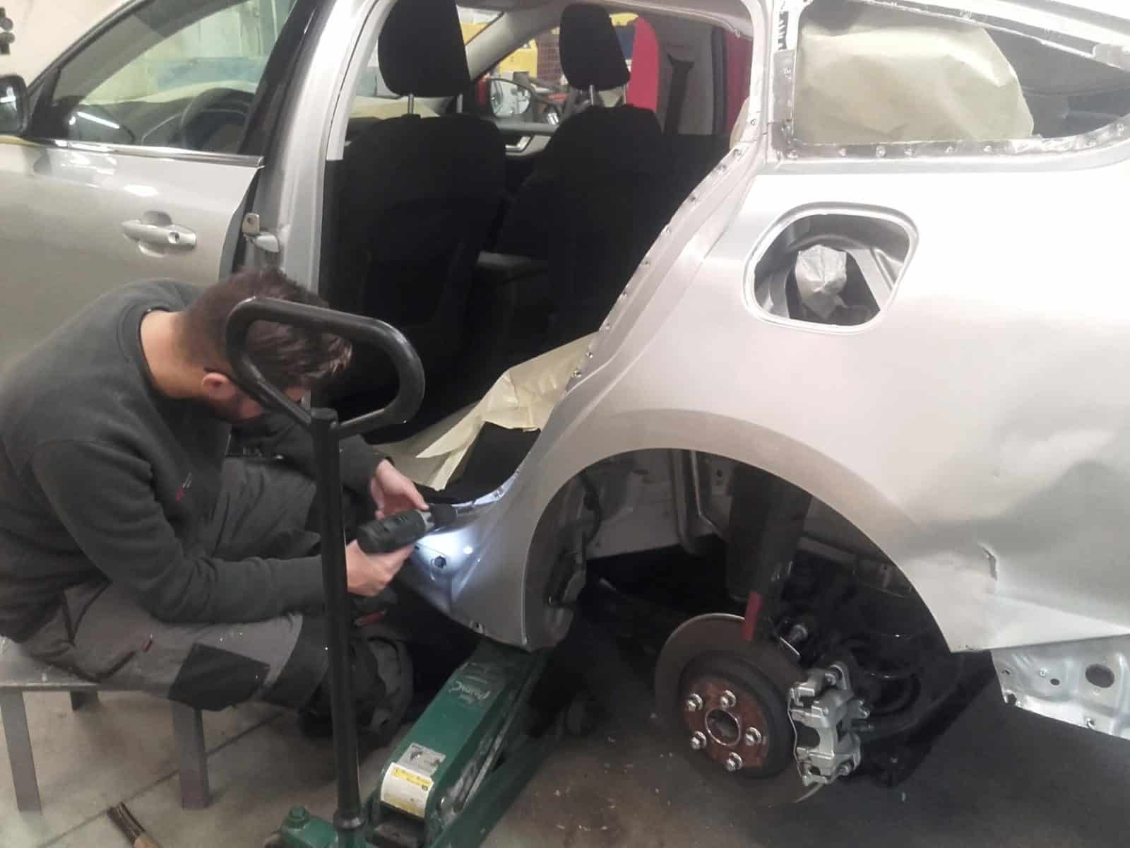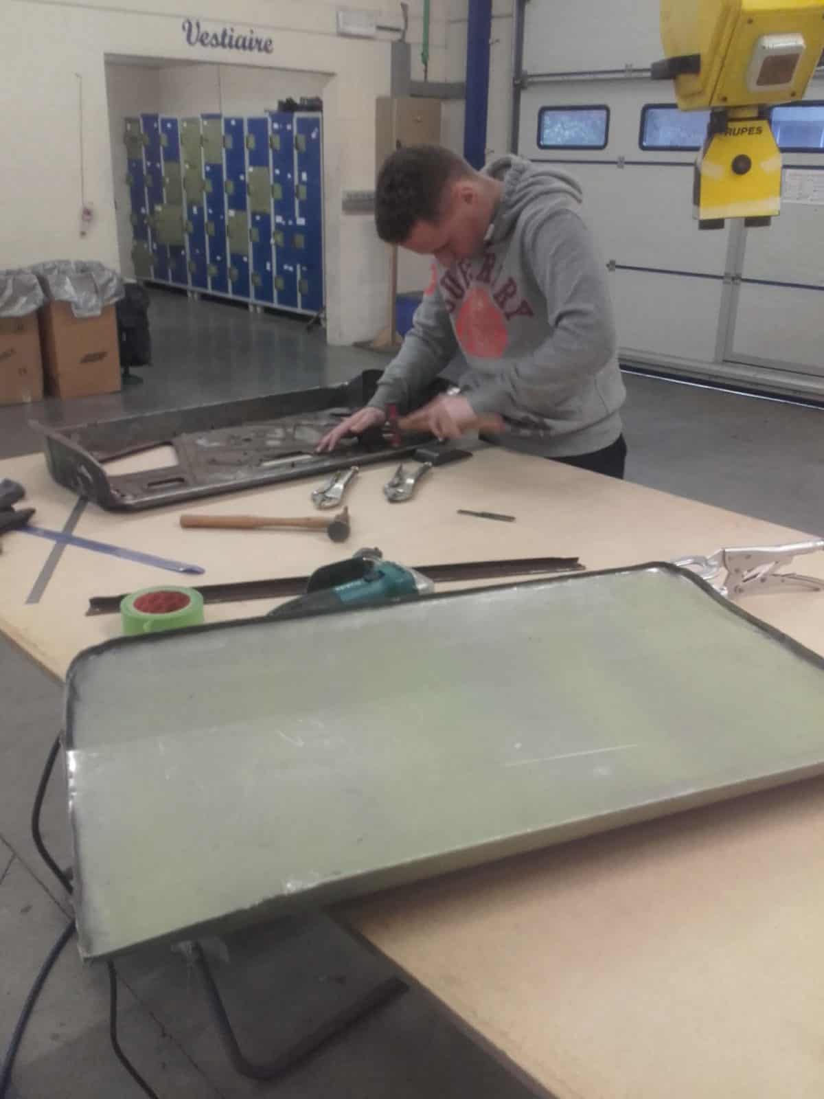 Du côté de la carrosserieLaurence Bernard29 décembre 2019Actualité Depuis la rentrée, les élèves de 5e, 6e et 7e carrosserie ont eu fort à faire. La preuve en images Remplacement de l’aile arrière sur une Ford Focus 2019 Projet de peinture complète sur une Amilcar 1923 Réparation du pare-chocs sur une Porsche Cayenne S Hybride 2016 Formage d’un panneau de portière de Triumph Sptifire Rénovation de phares et application d’un nouveau coating sur une Renault Clio