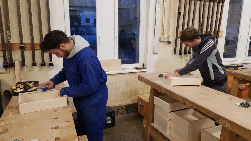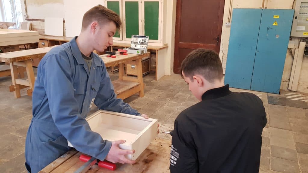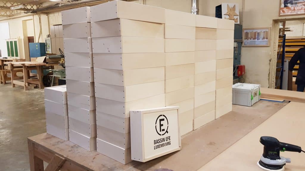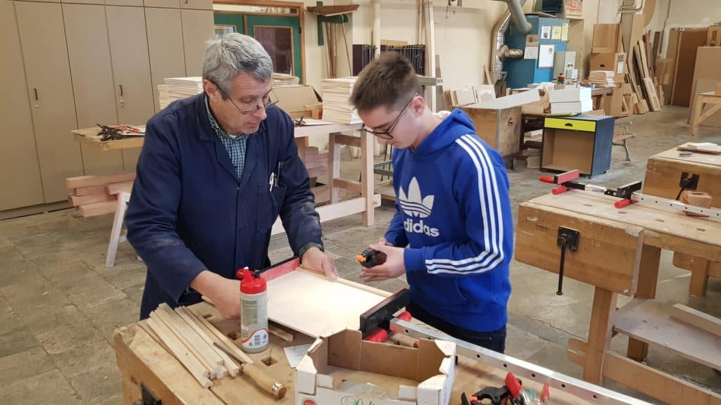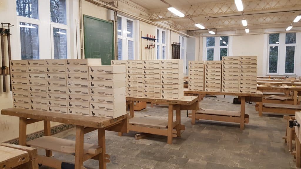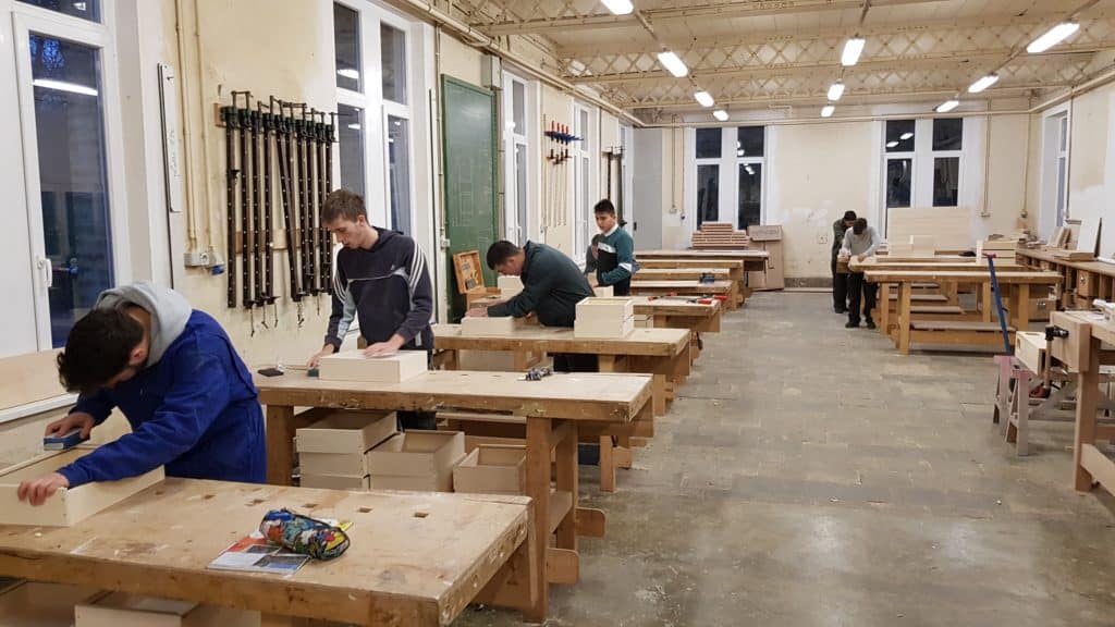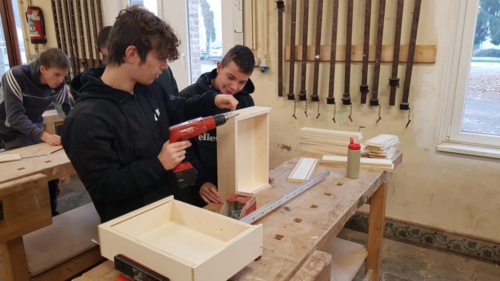 Au total, pas moins de 100 valisettes ont été fabriquées dans notre atelier. Elles comprendront des ocuments pédagogiques relatifs aux métiers du secteur bois et seront distribuées dans toutes les écoles primaires.