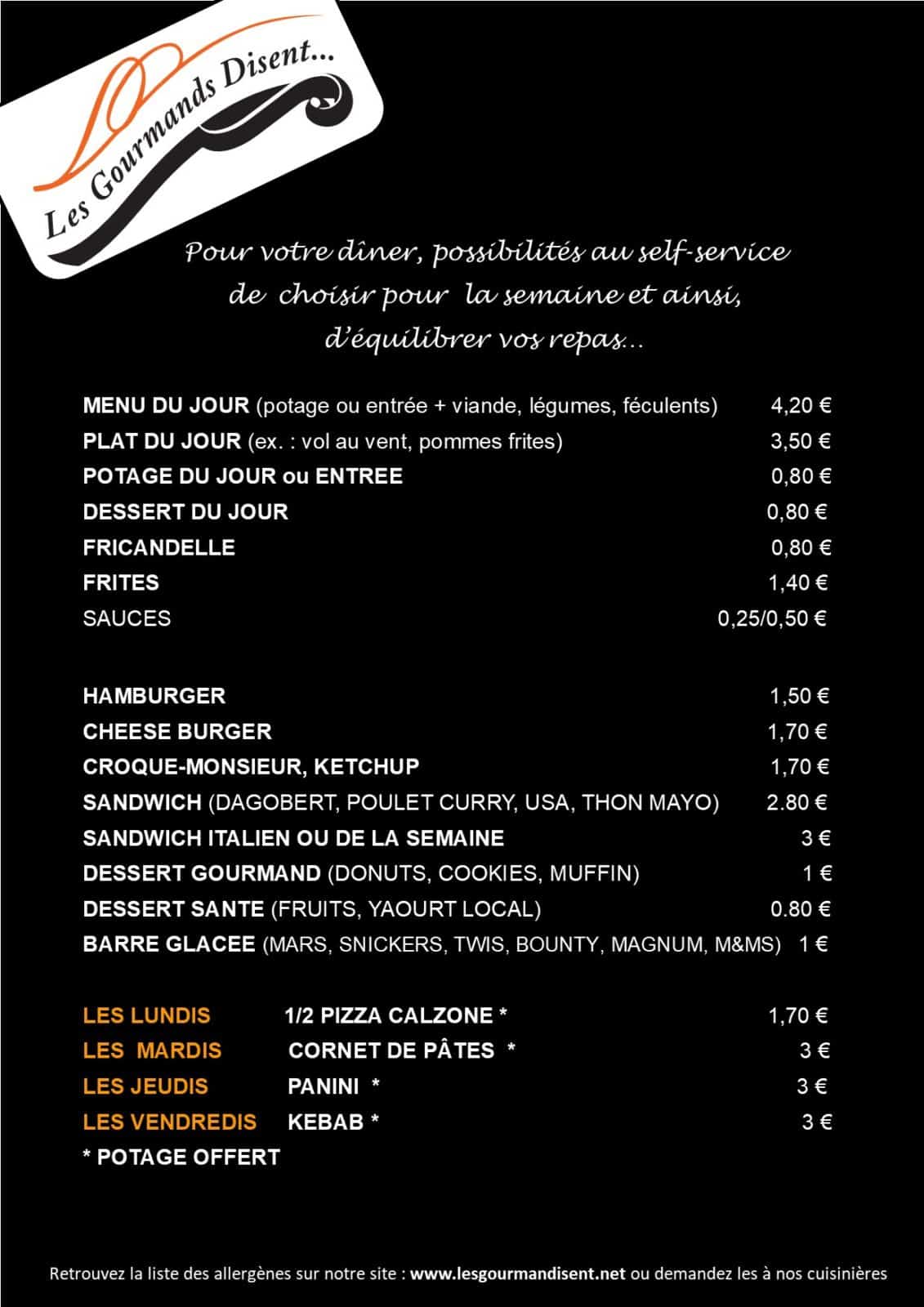 – potage offerts à l’achats du snack du jour à la carte