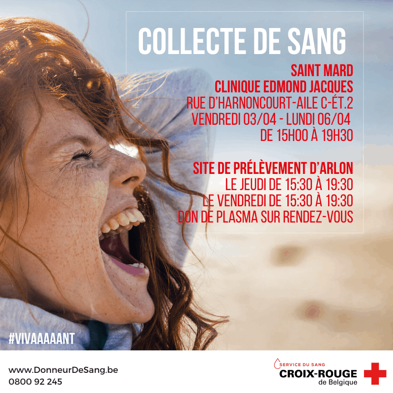 Saint Mard, à la clinique Edmond Jacques, le vendredi 03 et le lundi 06 avril 2020 de 15h00 à 19h30.
