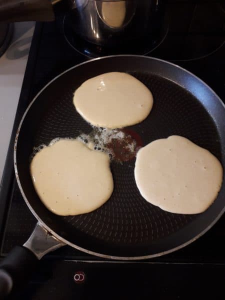 - Cook a part of the mixture, flip the pancake and cook the other side.