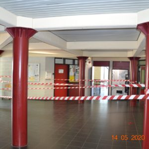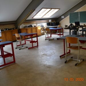 • Distanciation physique prévue dans les couloirs (fléchage), dans les classes, dans la cour de récréation (zones réservées à chaque “classe”), …