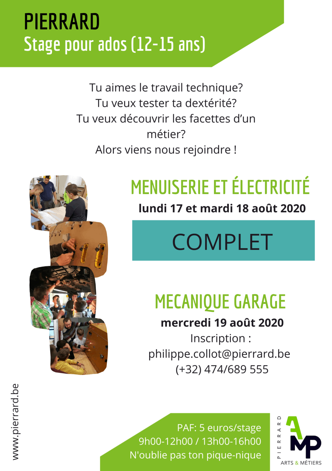 Cette année encore, nous proposons aux ados (12-15 ans) de partir à la découverte des métiers techniques durant quelques jours de stage en août. Au programme 2020?