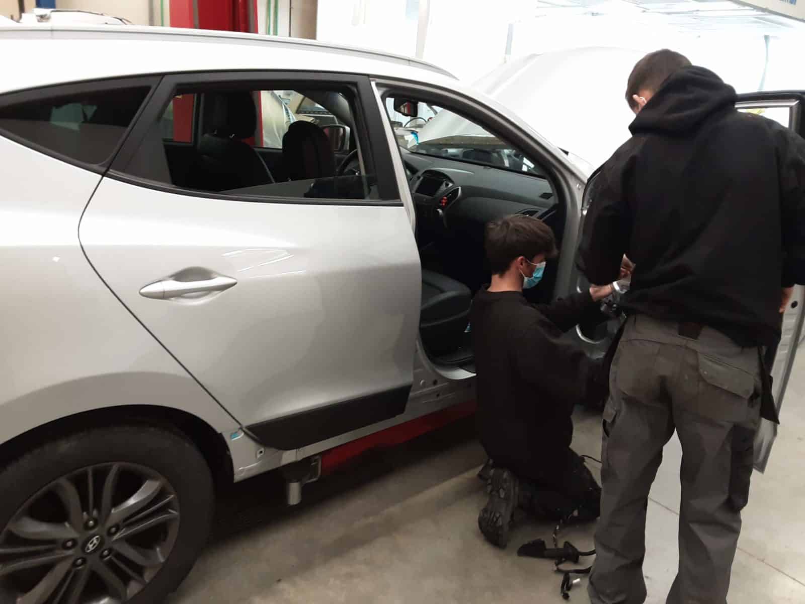 L’adaptation est plus que jamais au rendez-vous dans les écoles depuis le reprise!Un exemple en 7ème professionnelle carrosserie. Tous nos élèves des 2ème et 3ème degrés étant présents par demi-semaines, leur professeur de travaux pratiques a décidé de donner les cours à travers des photos et courtes vidéos. Les jeunes ont ainsi suivi à distance les premières étapes de la réparation du flanc droit d’une Hyundai IX35 avant de pouvoir finaliser le travail à leur retour à Pierrard.