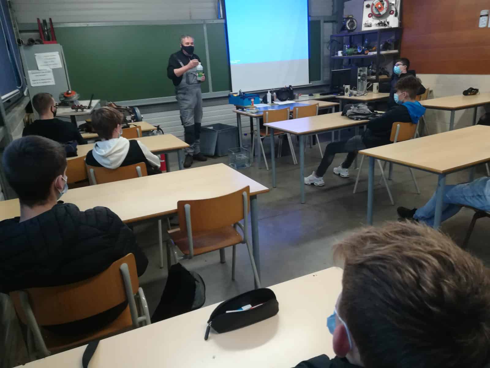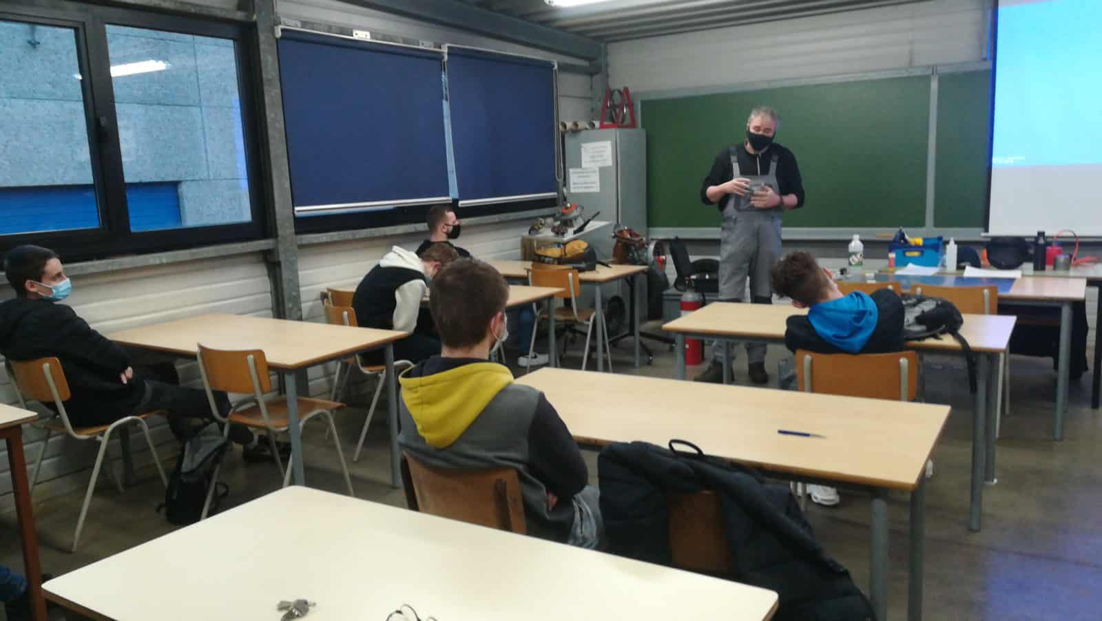 Les élèves de 4ème qualification et professionnelle du secteur automobile ont suivi, à Pierrard, une formation donnée par un formateur du centre de compétence Autoform de Liège. Au programme? Une journée autour du thème: “Sécurité et hygiène dans le secteur automobile”