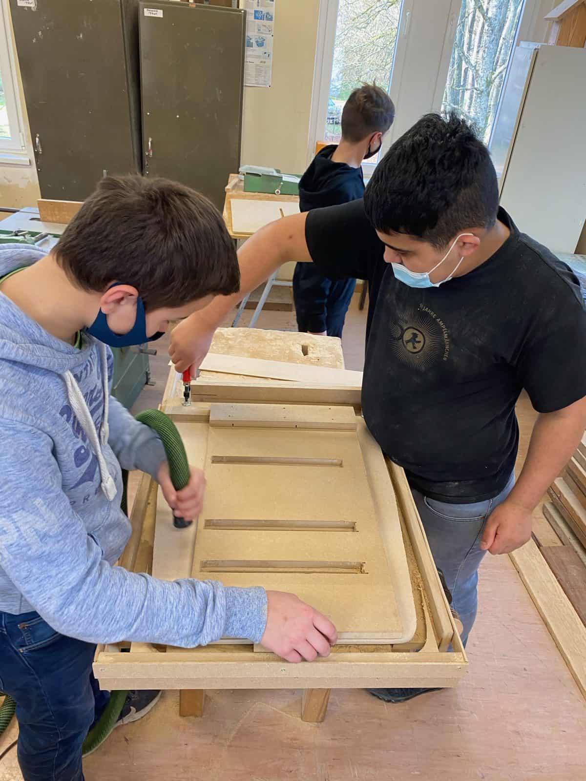 Les 1D et 2D…. de futurs menuisiers?Laurence Bernard6 mars 2021Actualité Les 1D et les 2D sont-ils de futurs menuisiers? Ils viennent de réaliser la structure des dossiers des fauteuils du cinéma d’Habay-la-Vieille. Bravo à eux pour ce travail de précision.