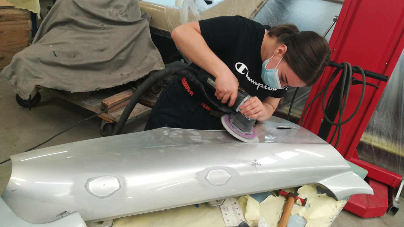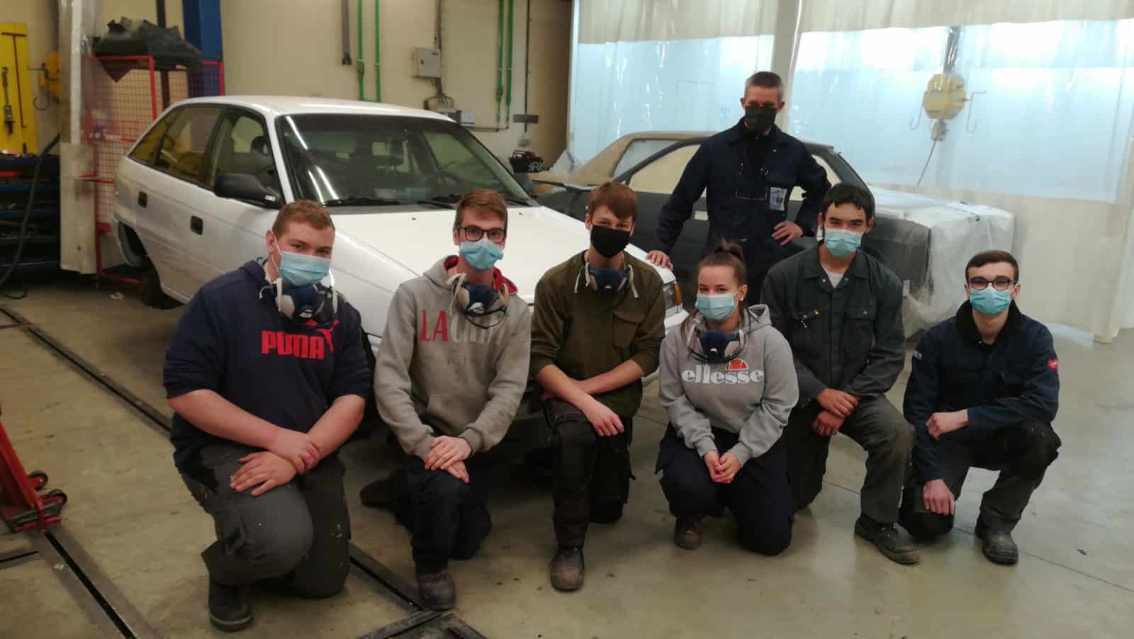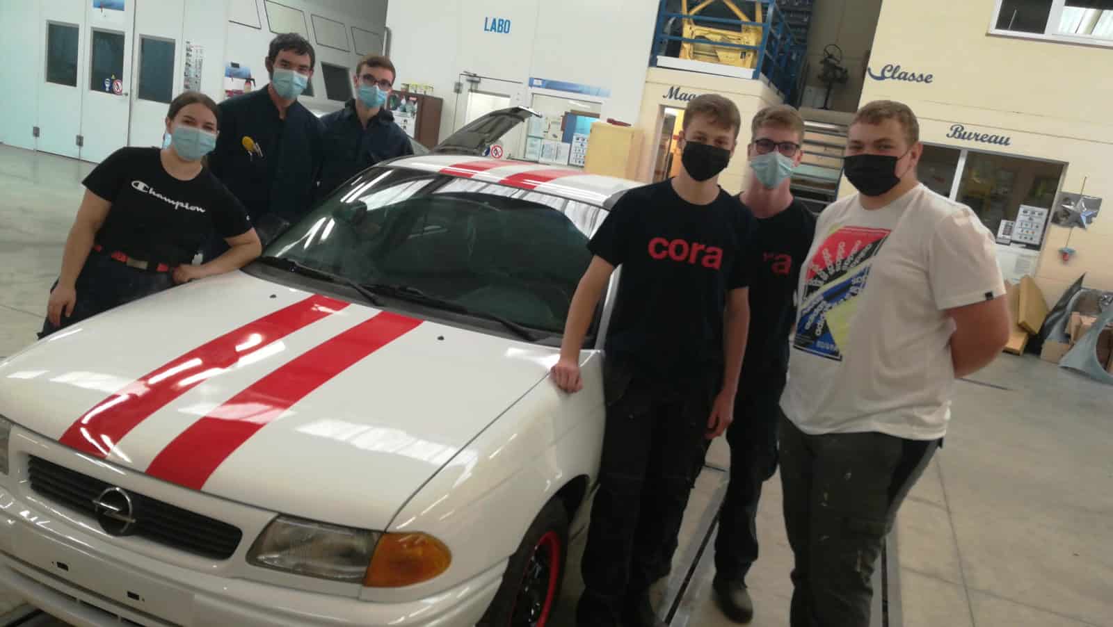 Malgré l’hybridation de ces derniers mois et les apprentissages prévus aux cours de travaux pratiques, les élèves de 5Pc se sont lancés dans la réalisation d’une peinture complète d’un véhicule du parc automobile de l’Institut.