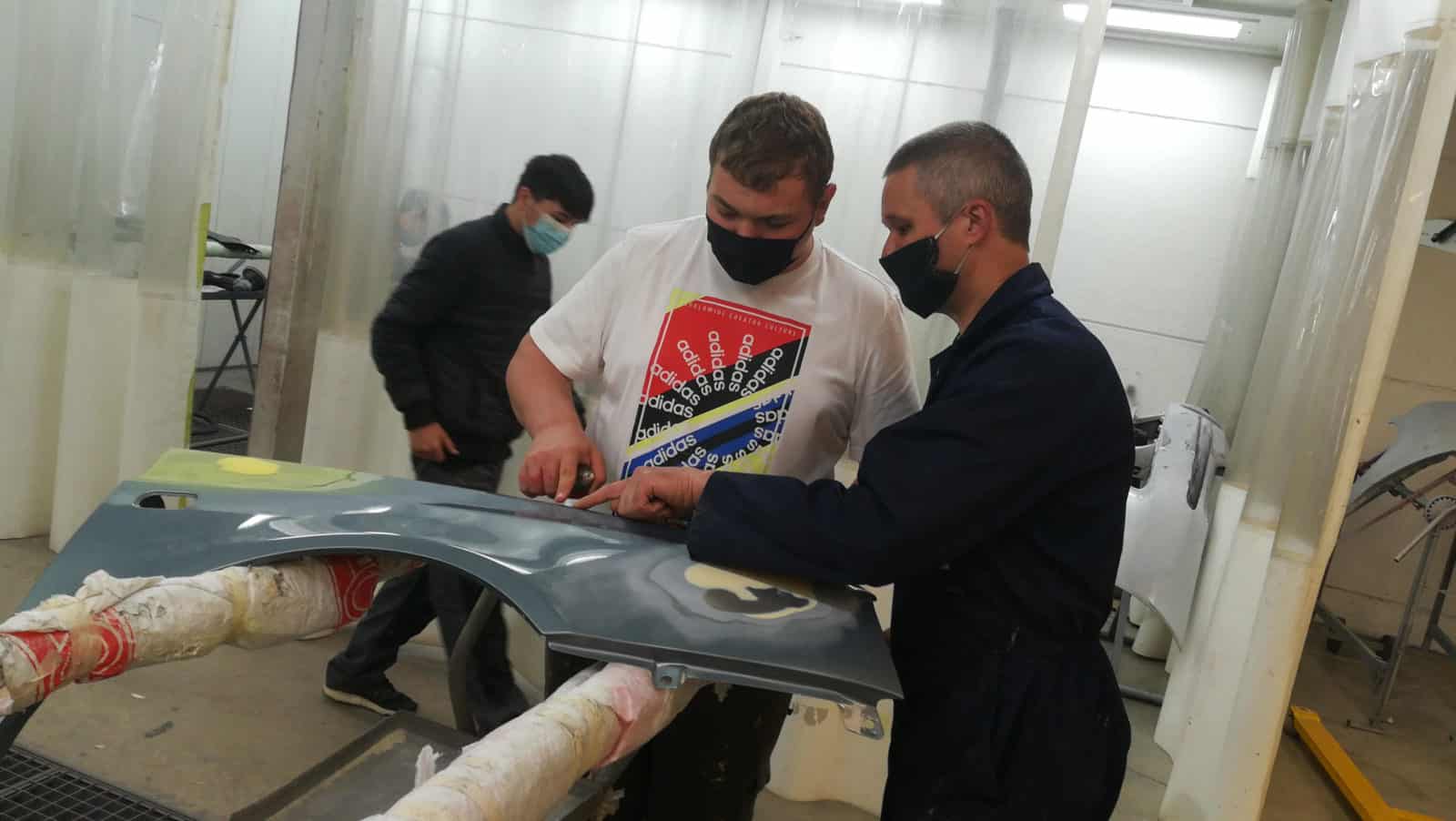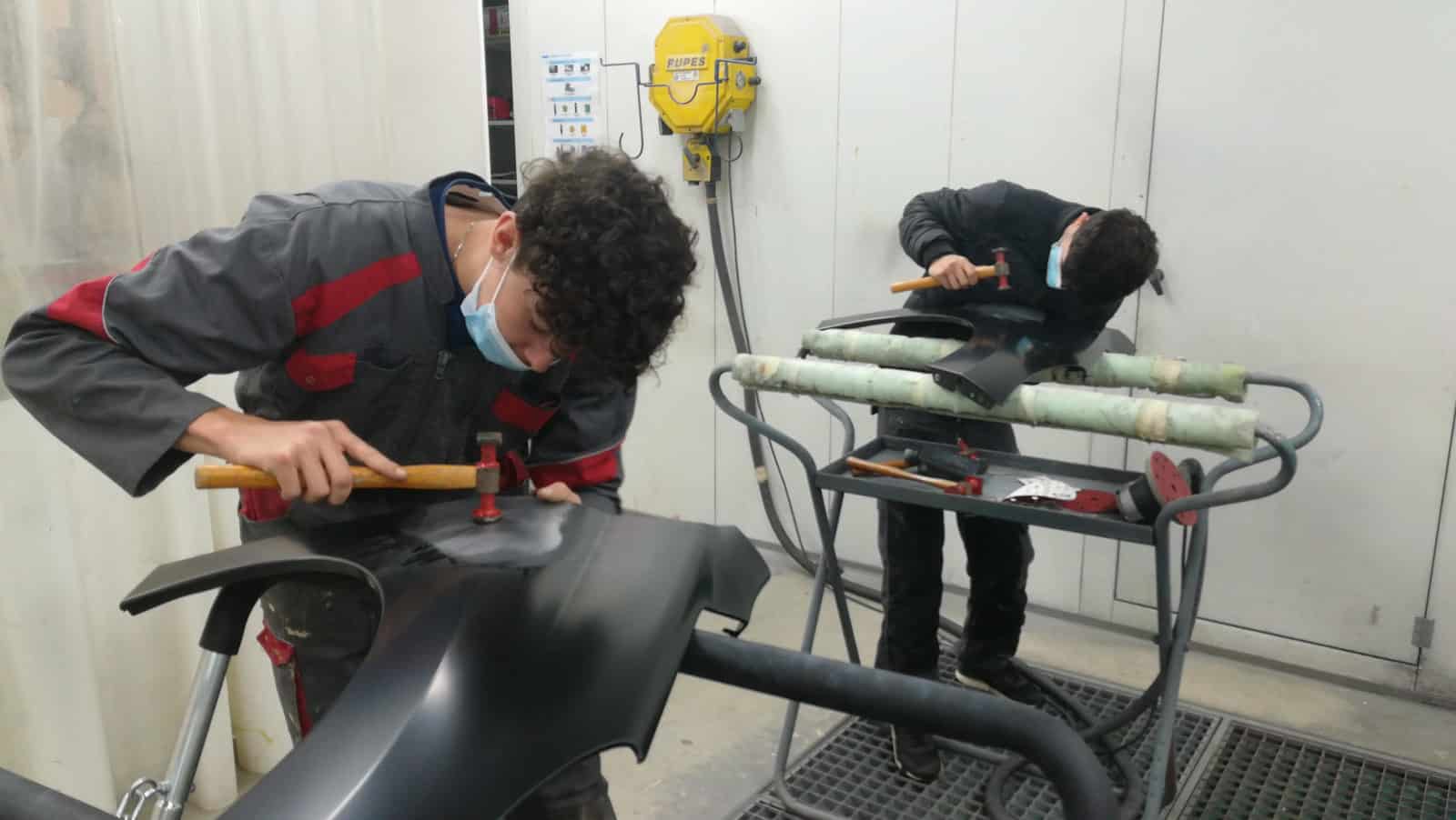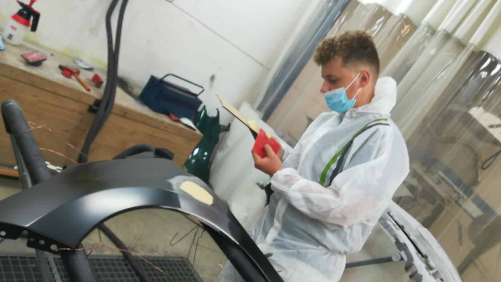 Après des opérations de démontage d’éléments, le ponçage, l’enduisage, ils ont pu faire la peinture complète du véhicule didactique, à la grande satisfaction de Monsieur Habran (professeur de travaux pratiques).