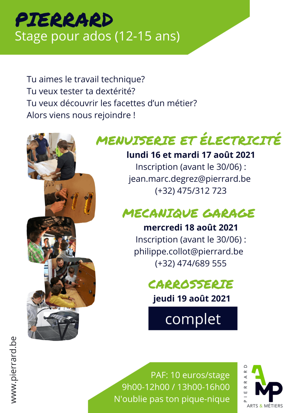 Depuis quelques années, les ateliers de Pierrard ouvrent leurs portes aux plus jeunes, pendant l’été. 3 stages seront proposés en août