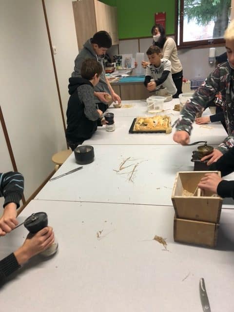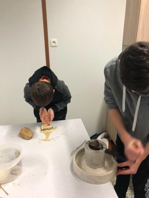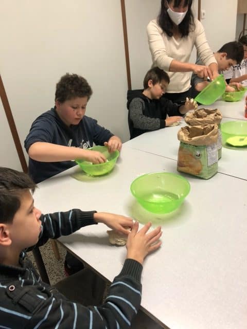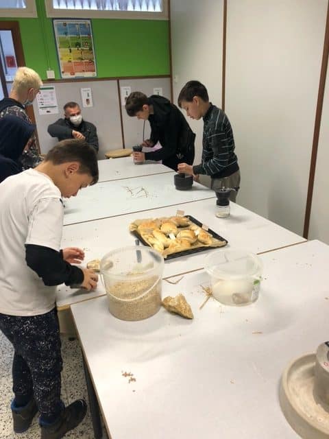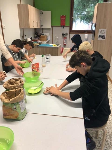 Ce séjour a permis aux élèves de se familiariser avec le milieu forestier et le milieu rural : classification des arbres, recherche de présences animales, observation du cycle de l’eau, décryptage du paysage. D’autres activités telles que l’utilisation de plan et boussole autour du centre ont mis en pratique les notions théoriques du cours d’EDM. Le cours de sciences n’a pas été oublié puisque nous avons regardé, écouté, touché et même goûté des éléments de la nature environnante. Nous avons aussi mis la main à la pâte : peser les ingrédients, malaxer et pétrir la pâte, la mettre en forme, cuire les pâtons et enfin la dégustation. Ces différentes étapes de fabrication du pain n’ont plus de secret pour nous. Tout a été mangé malgré notre intention première de ramener un souvenir…