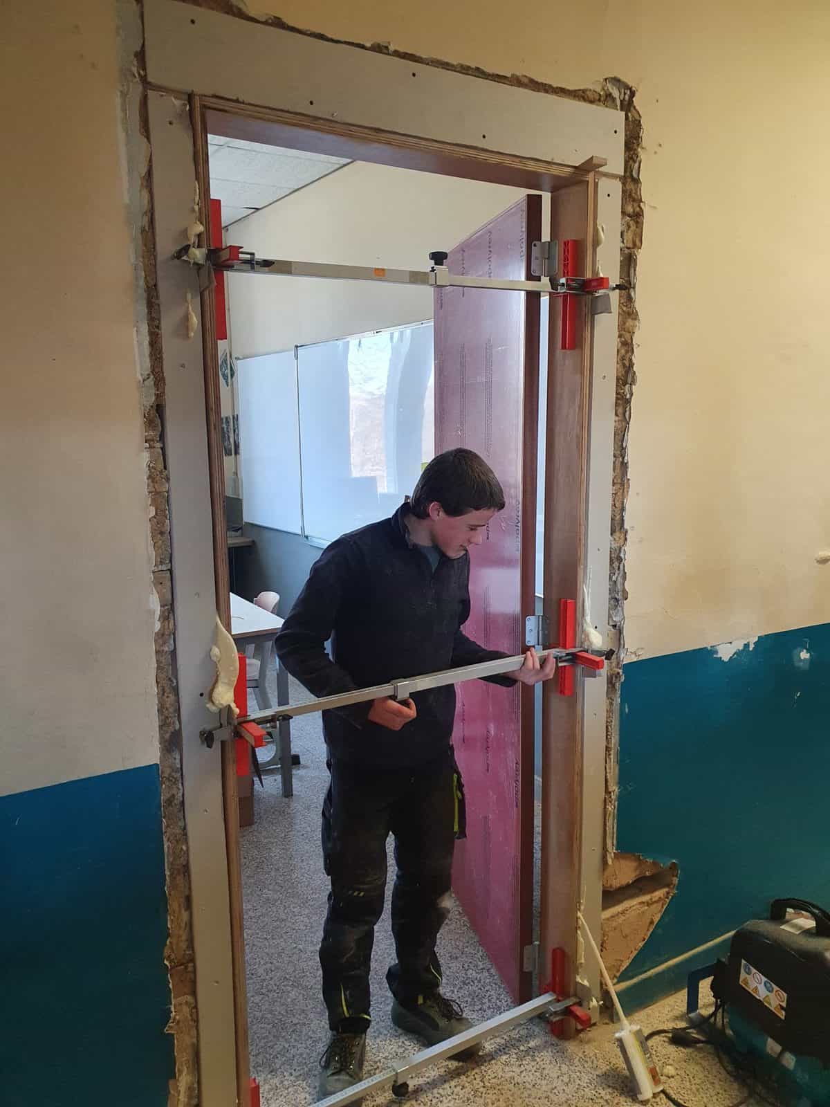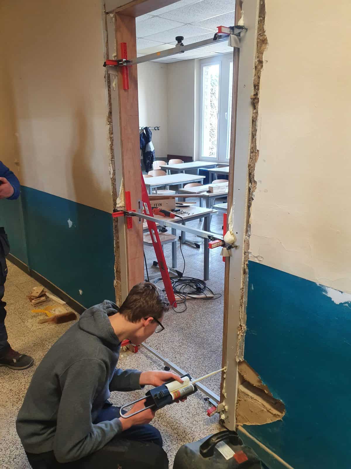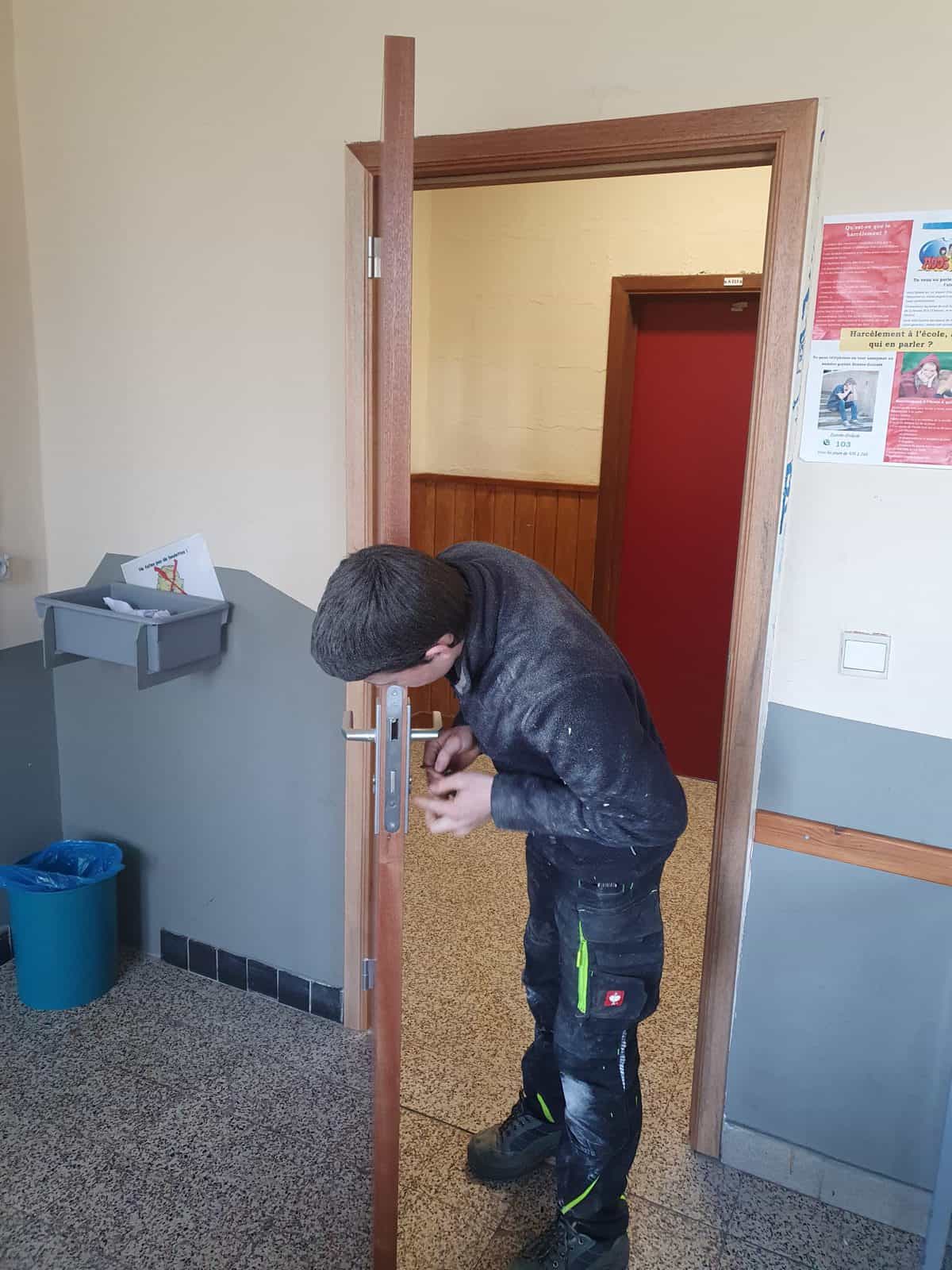 Les 4Pbois placent des portes au 1er degréLaurence Bernard22 avril 2022Actualité Encore un beau travail de menuiserie assumé par les élèves de 4° année qui viennent de réaliser les huisseries et la pose de portes des classes.Félicitations pour ce très beau travail.
