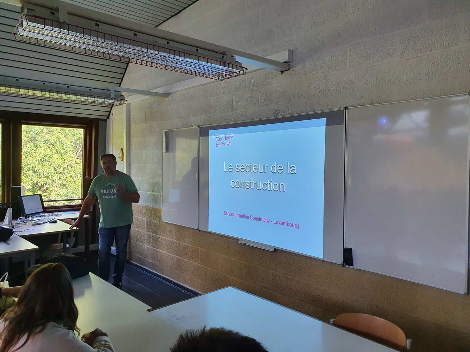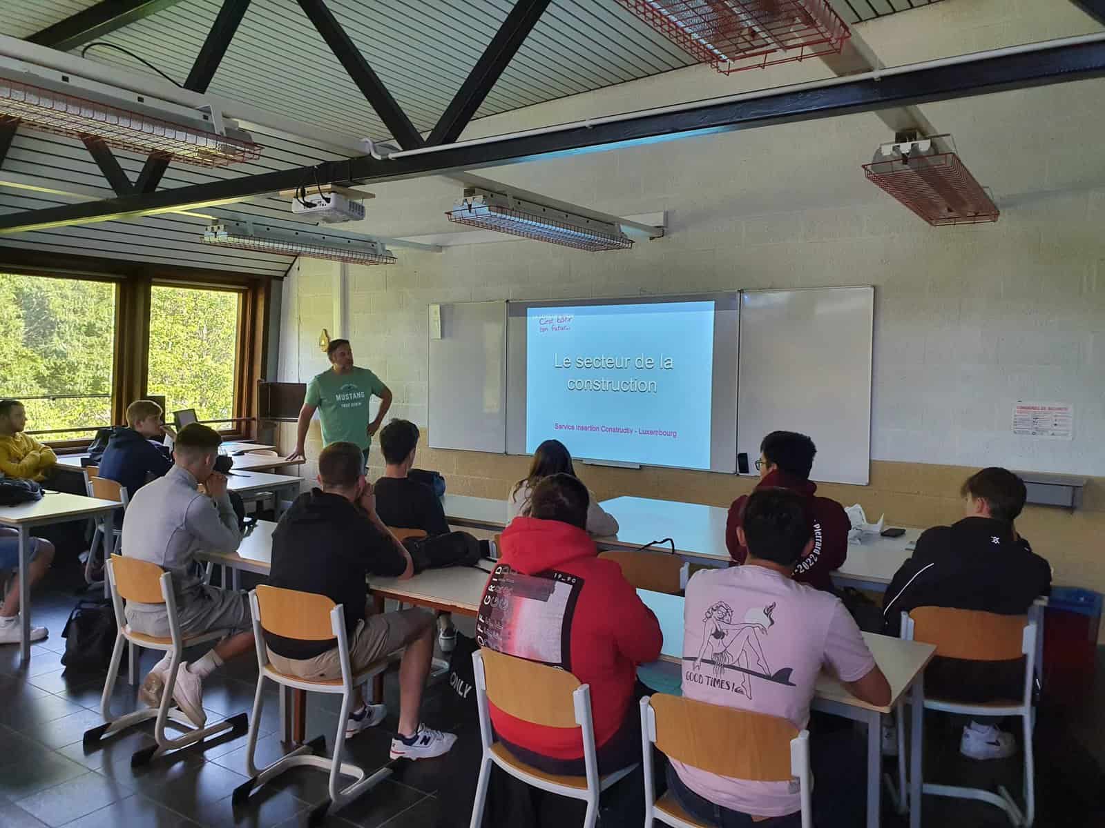 Afin d’aider nos élèves sortants des sections menuiserie et construction – travaux publics pour trouver du travail dans le secteur, un délégué de Constructiv est venu informer nos élèves.