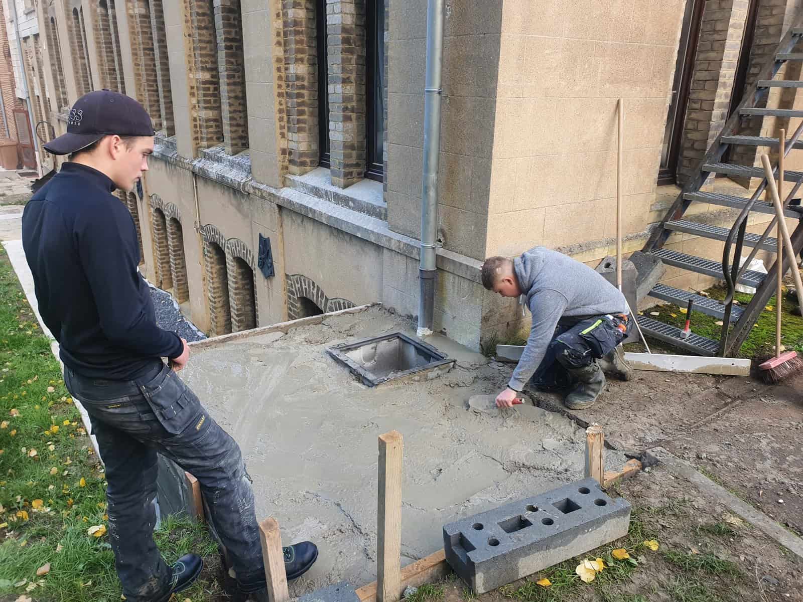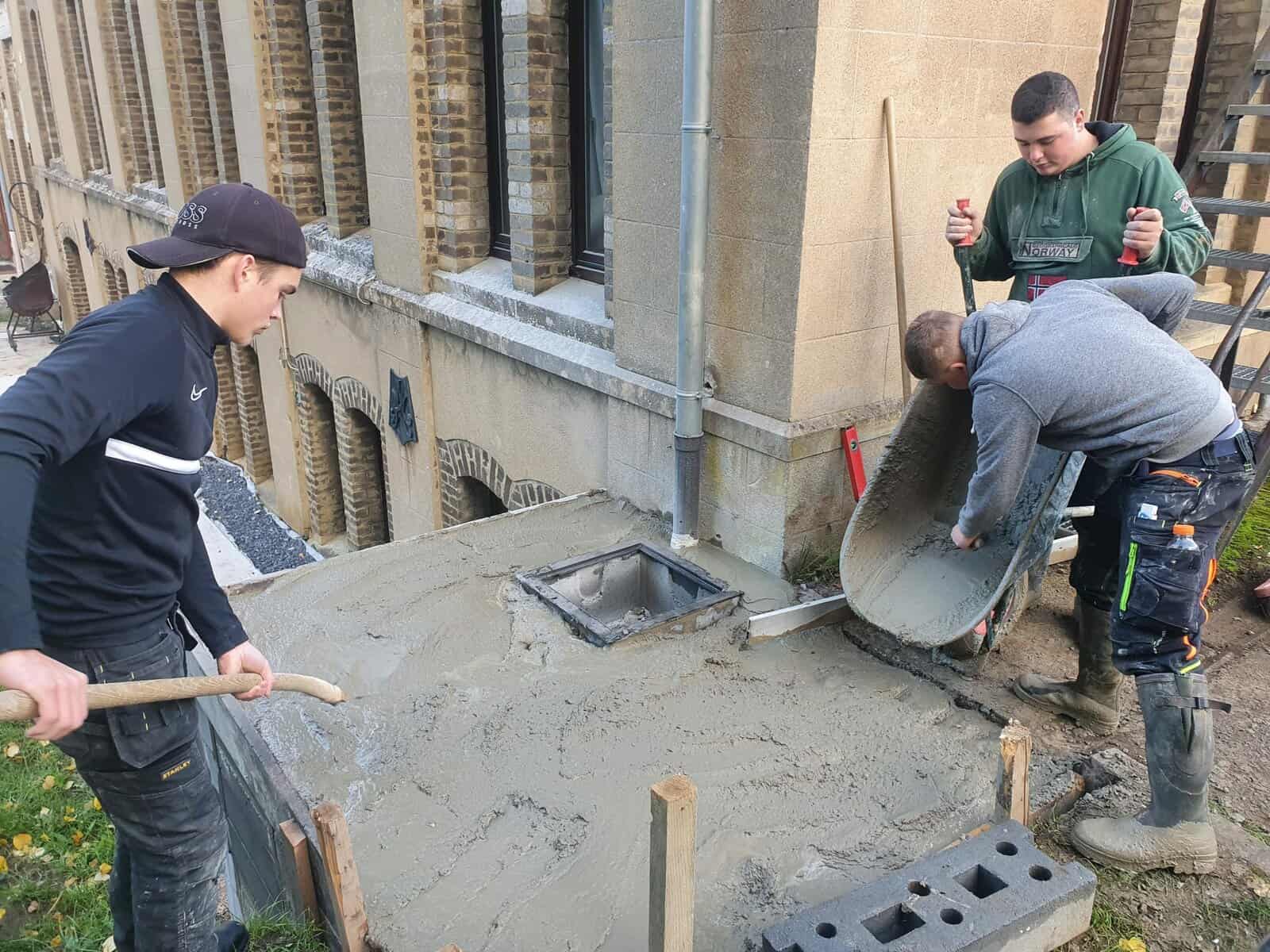 En effet les étudiants de la section construction- travaux publics viennent de réaliser une chambre de visite derrière la cuisine.