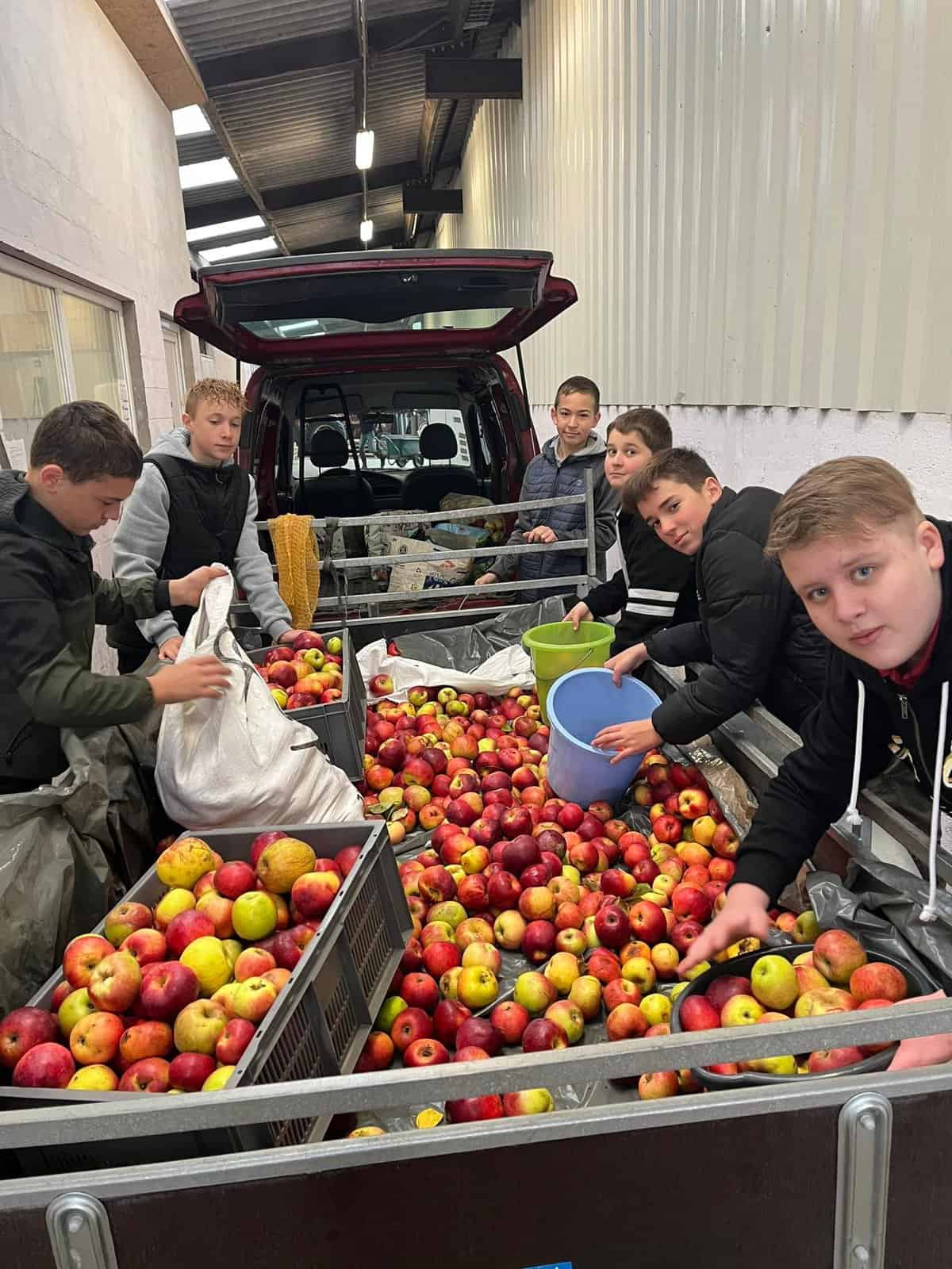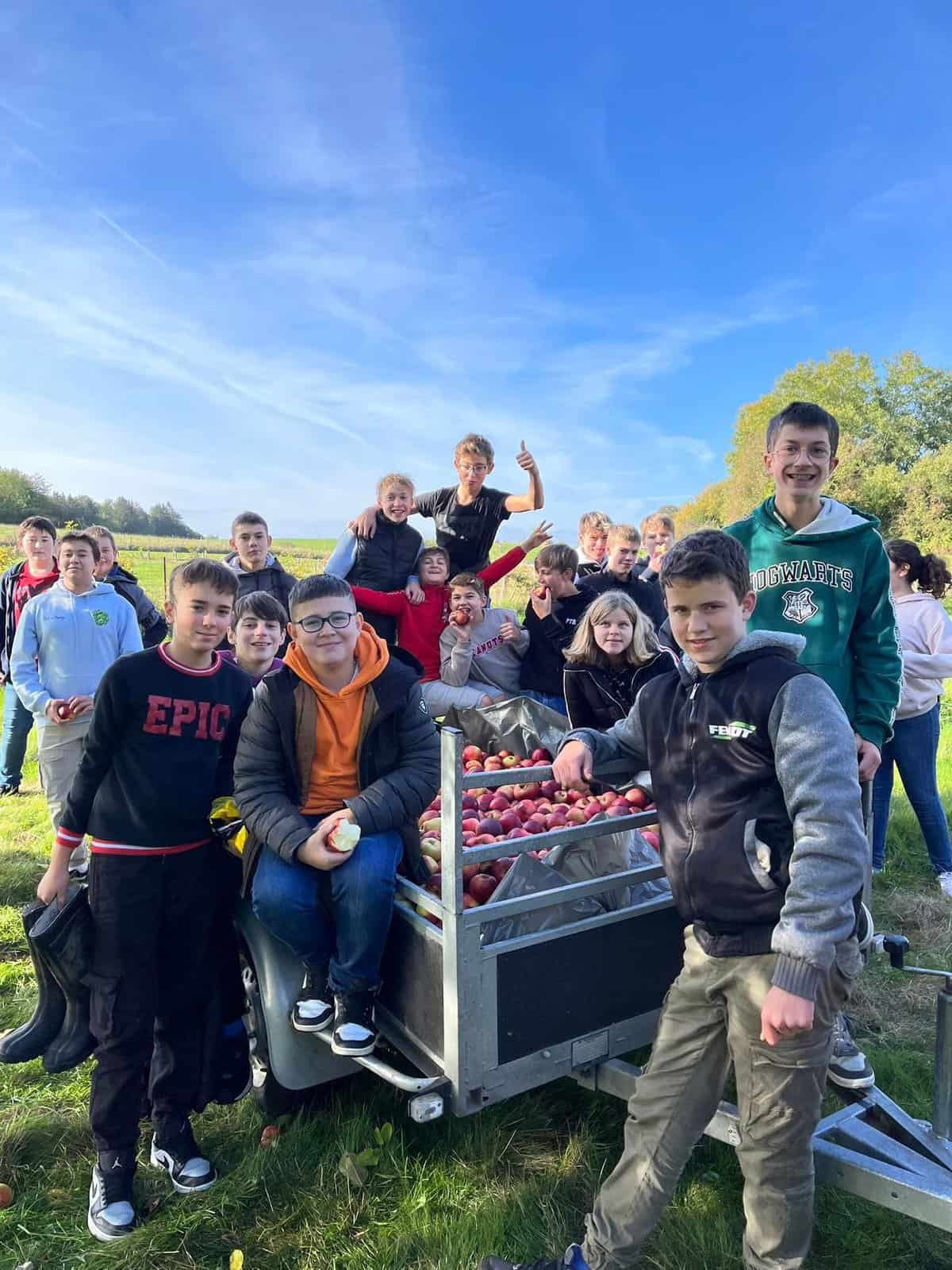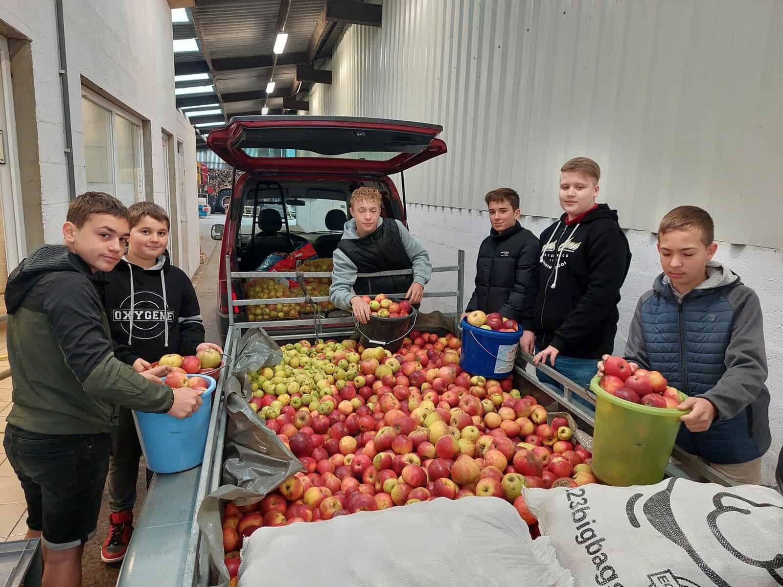 Pour financer leur classe de neige, les élèves de 2C mettent la main à la pâte. Après avoir récolté les pommes, direction le pressoir d’Orsinfaing, ce jeudi.