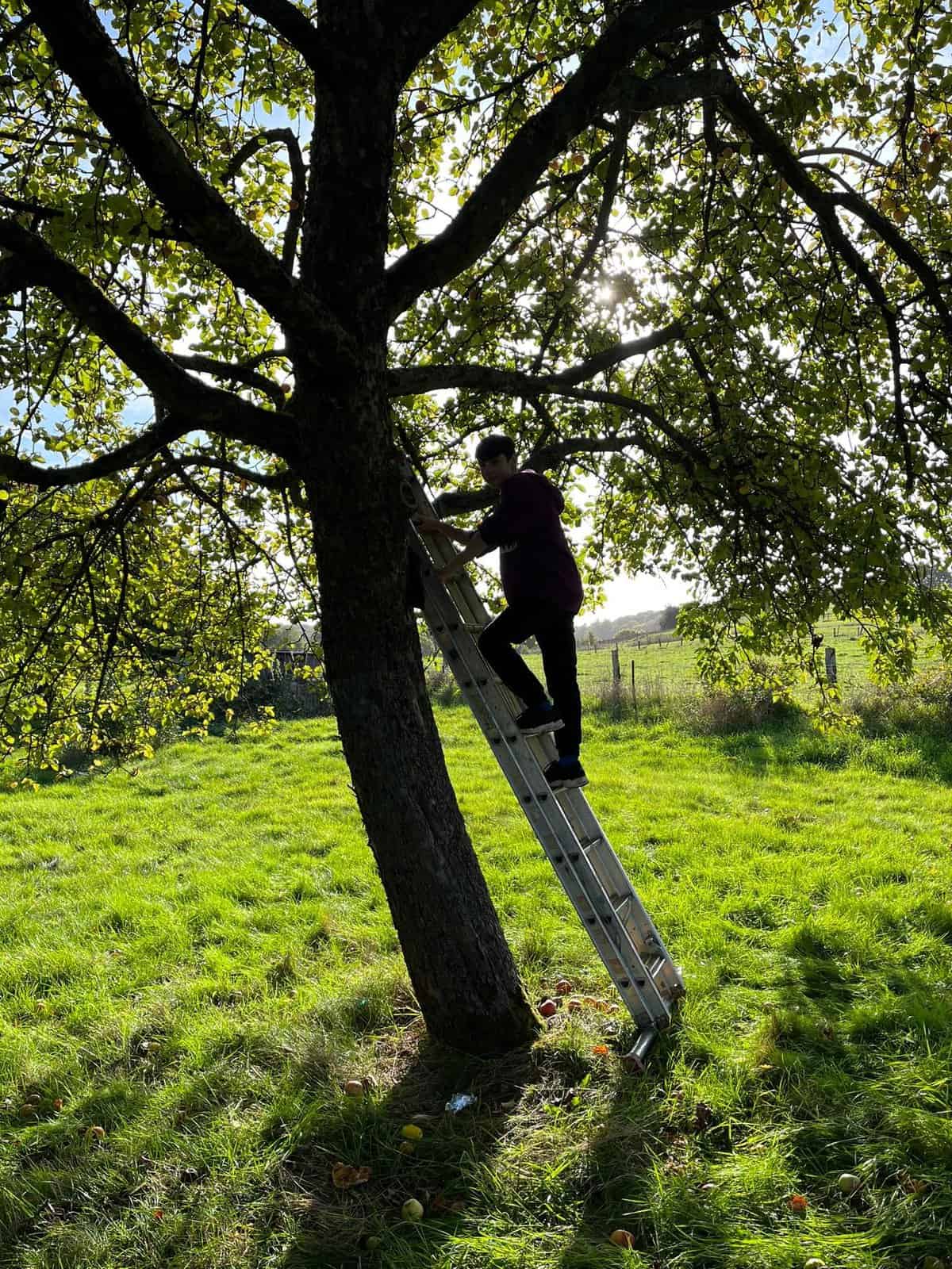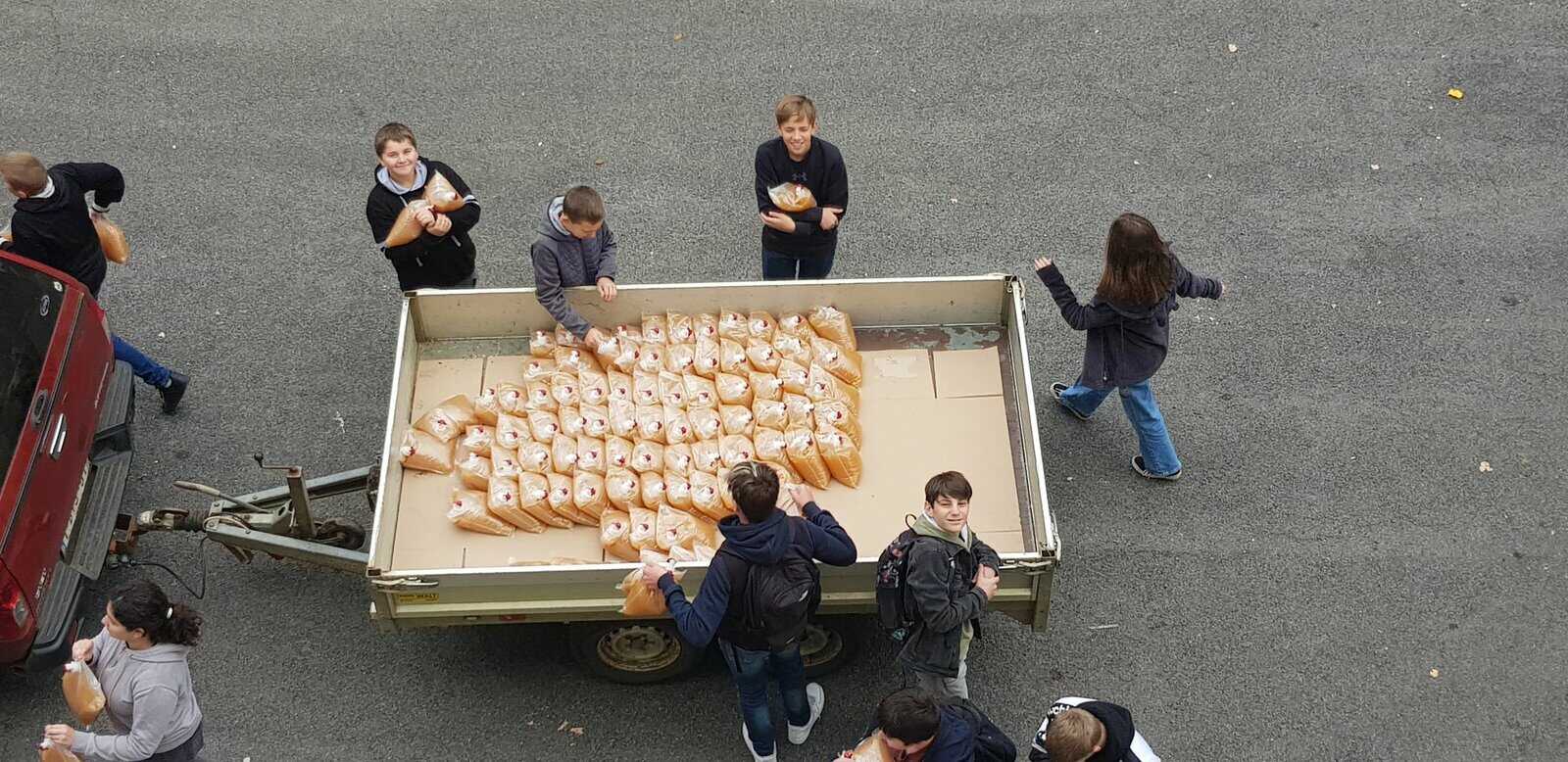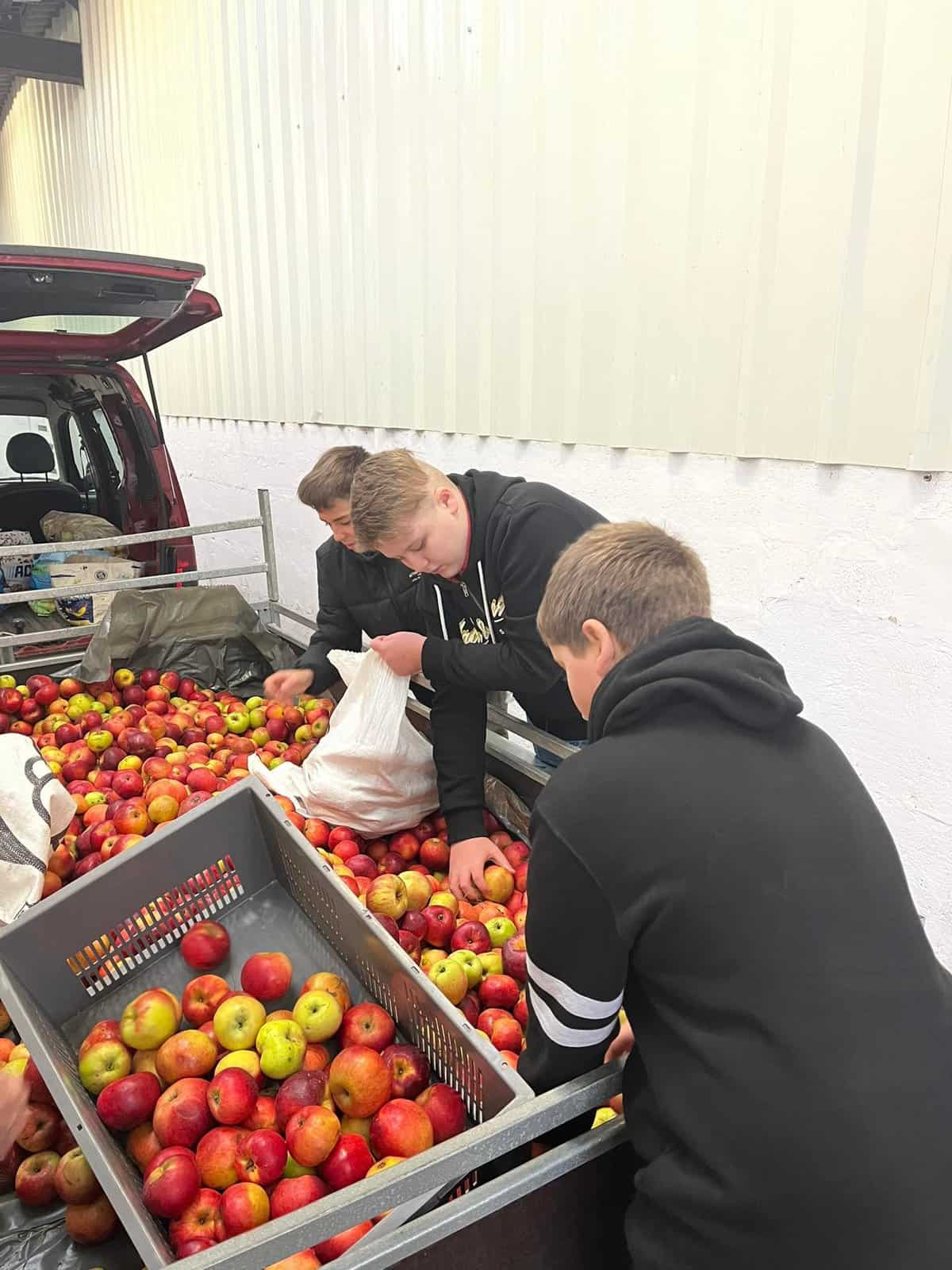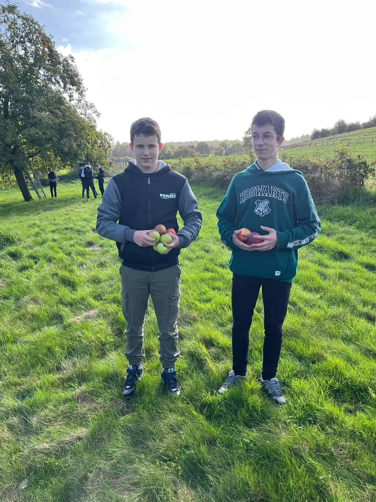 Pour financer leur classe de neige, les élèves de 2C mettent la main à la pâte. Après avoir récolté les pommes, direction le pressoir d’Orsinfaing, ce jeudi.