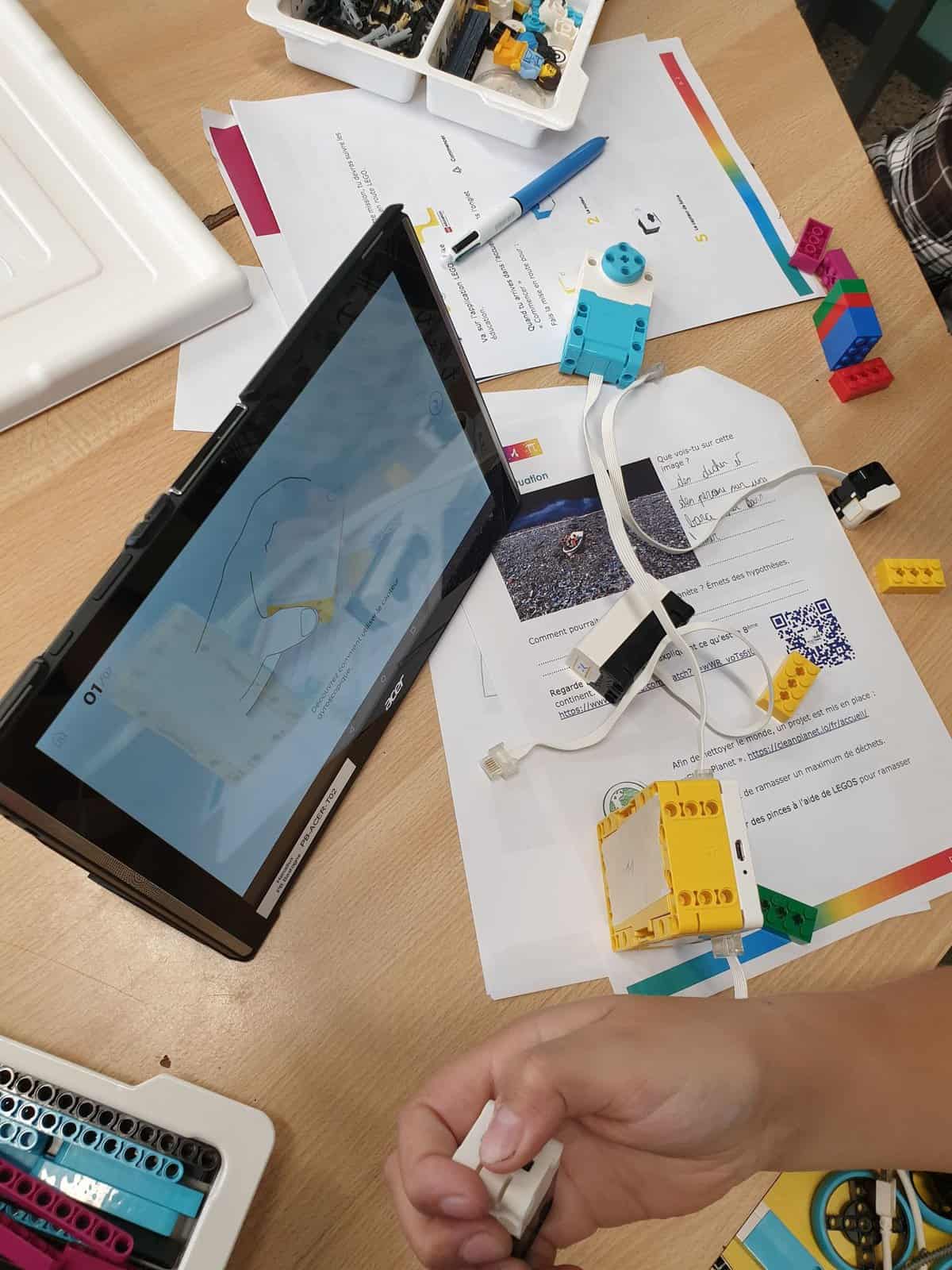 - réalisé des tâches au moyen de robots Lego Spike (1 Différenciées). Le thème? Comprendre le mécanisme des robots récoltant des plastiques dans les mers et les océans