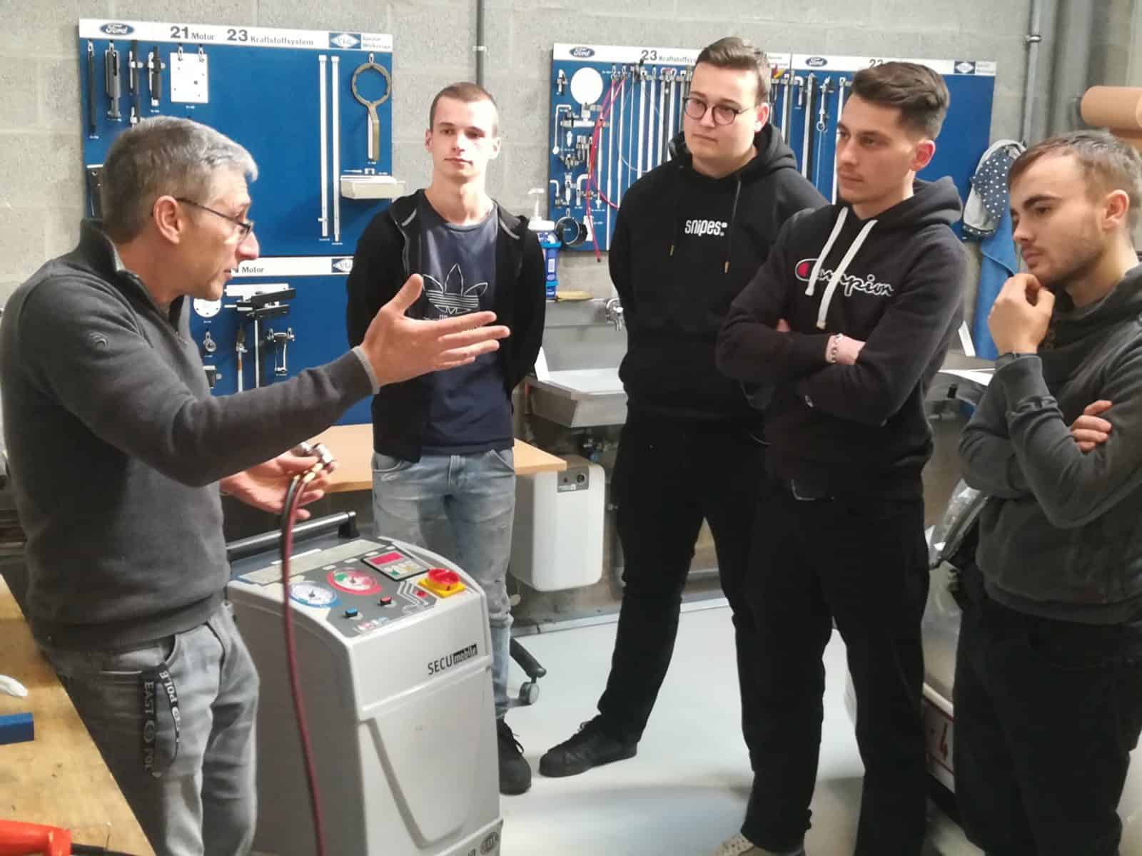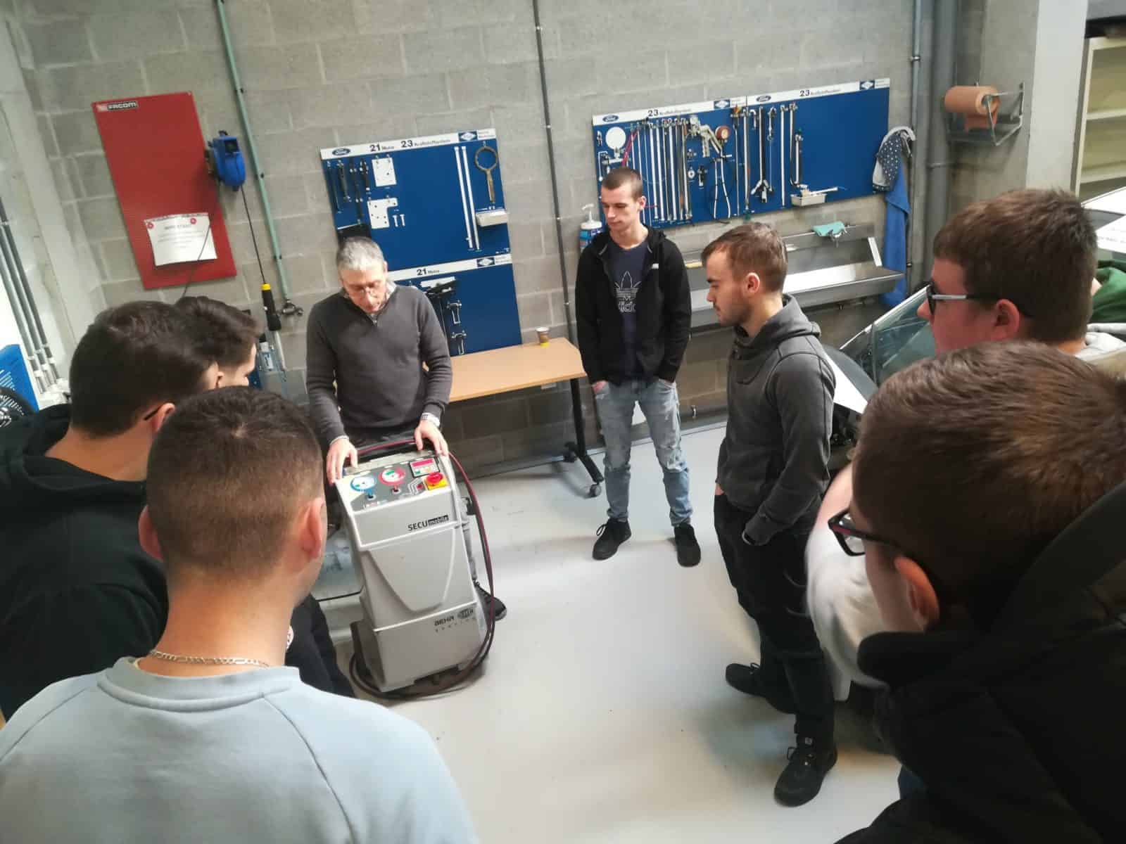 Cette année encore, les élèves de 7°Complémentaire en Electricité Automobile ont suivi 3 jours de formation au centre de compétence Autoform à Liège.  Durant un jour, ils ont pu découvrir les règles à respecter concernant la récupération du gaz réfrigérant R134a utilisé dans les installations de climatisation de nos voitures.