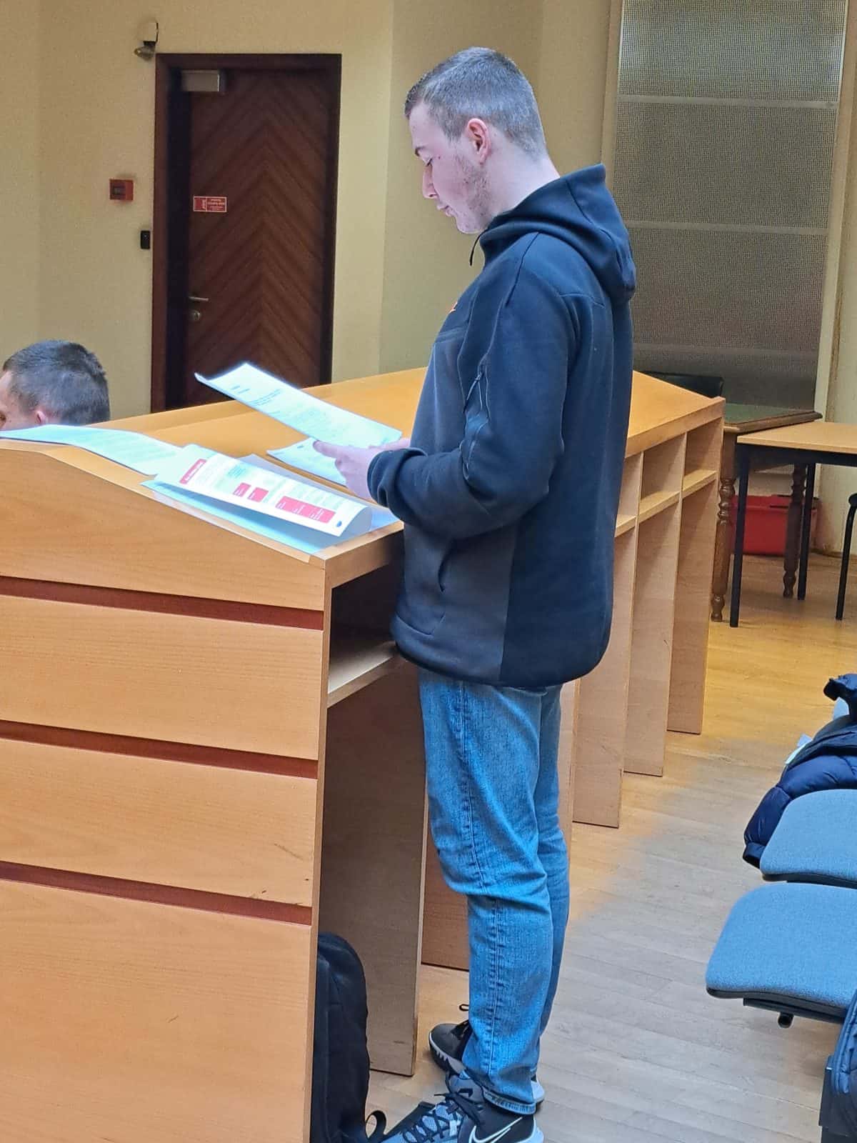 Ils ont été confrontés à une situation « fictive » d’un dossier traitant une affaire pénale. Chacun a dû endosser un rôle précis (juge, avocat de la défense, procureur, policier …). Une fois prêts, nous sommes redescendus à la salle du Tribunal et chacun a pu jouer son rôle (les avocats en plaidant, le juge en rappelant les faits du dossier, le procureur en exposant le déroulement des faits …). Même les policiers ont tenu leur rôle ….