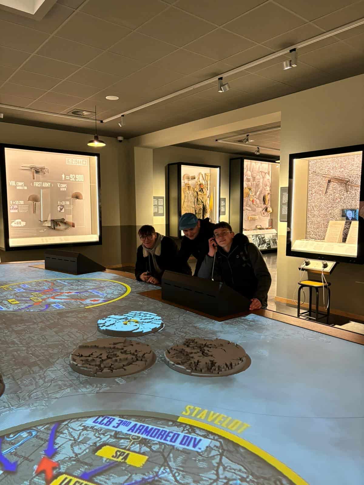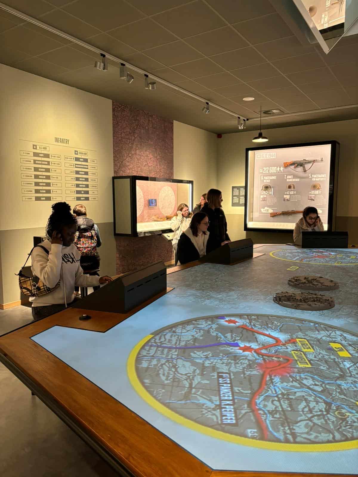 Mais Bastogne, c’est surtout le haut lieu de la bataille des Ardennes. Les élèves ont donc également découvert le tout nouveau War Rooms, le QG de McAuliffe. Au moyen de différentes simulations, ils ont pu préparer un tank adapté à la mission et à la météo du jour, remplir les caisses de ravitaillement en armes, médicaments, nourriture, revivre au jour le jour les avancées des troupes allemandes et américaines sur le terrain. Dans les