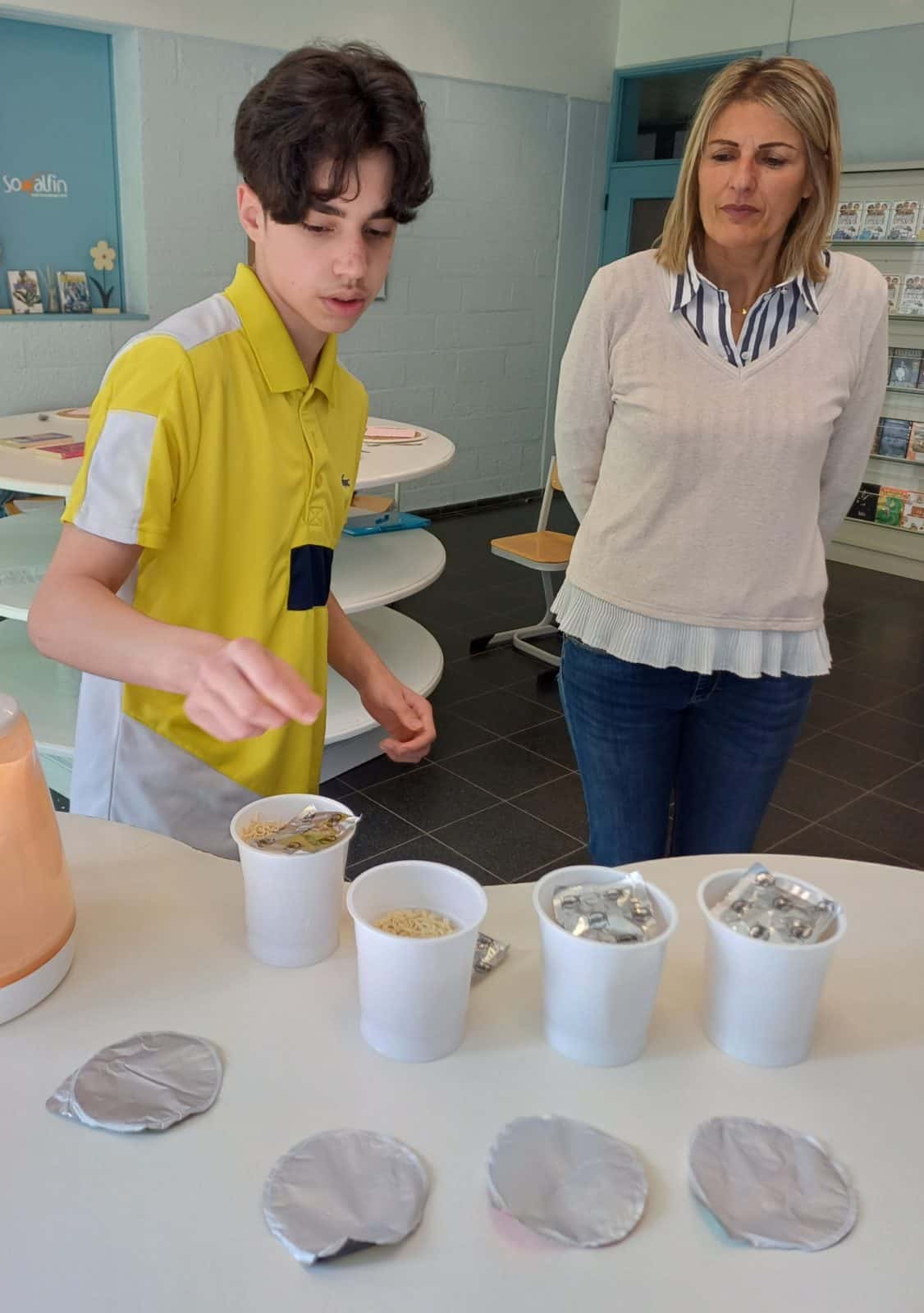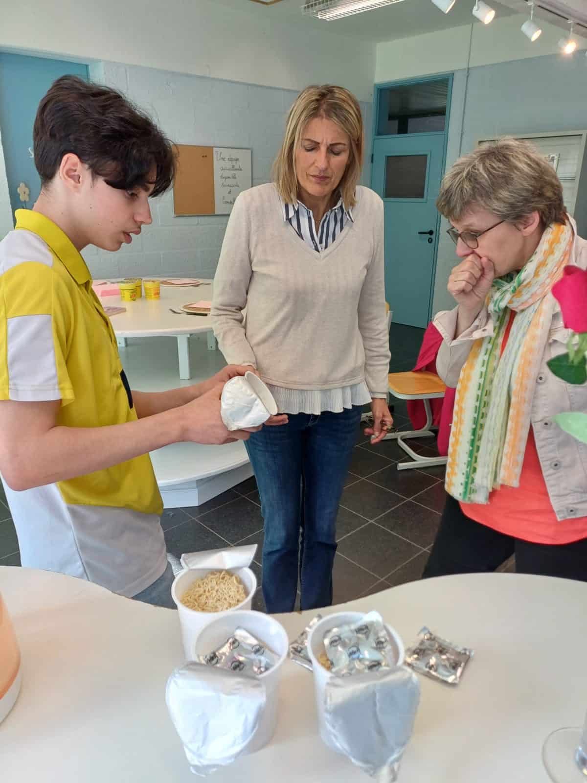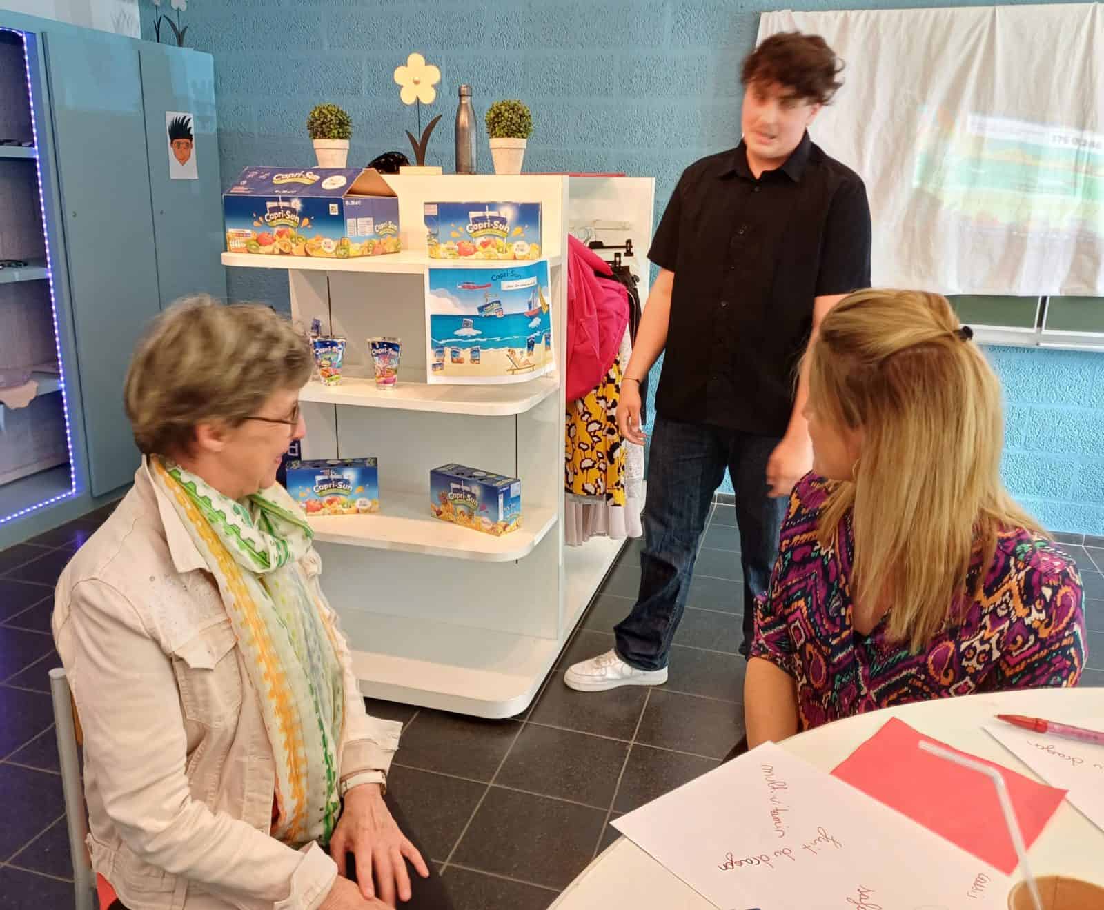 Après avoir invité, par mail, leurs professeurs à participer à la présentation d’un produit choisi librement, les élèves de 4ème technicien commercial les ont accueillis dans le magasin, avec le sourire et les qualités d’un bon vendeur. Les professeurs ont pu assister à une véritable démonstration de divers produits. Tout en utilisant des techniques d’étalage différentes, ceux-ci étaient très bien mis en évidence. Les élèves ont également utilisé plusieurs moyens de promotion sur le lieu de vente afin de convaincre davantage leurs professeurs, à savoir, dégustation, organisation de concours, distribution d’échantillons, de cadeaux, affiche, réductions, … Les élèves ont réussi, grâce à une bonne connaissance de leurs produits et donc des arguments adaptés, à convaincre leurs professeurs.