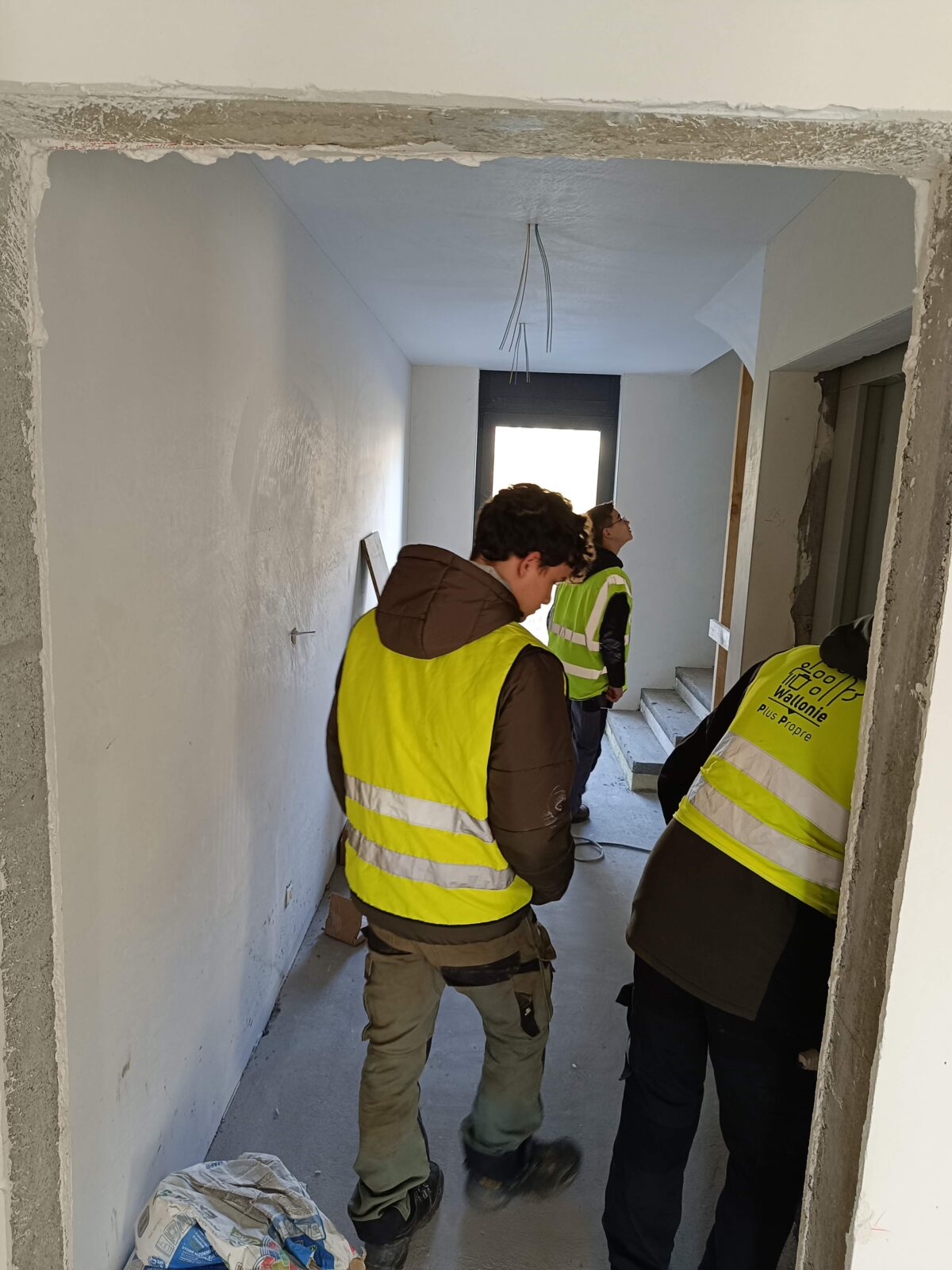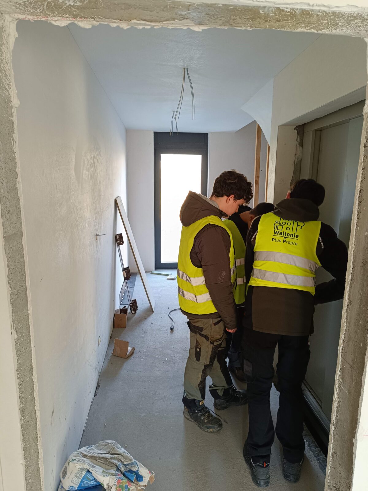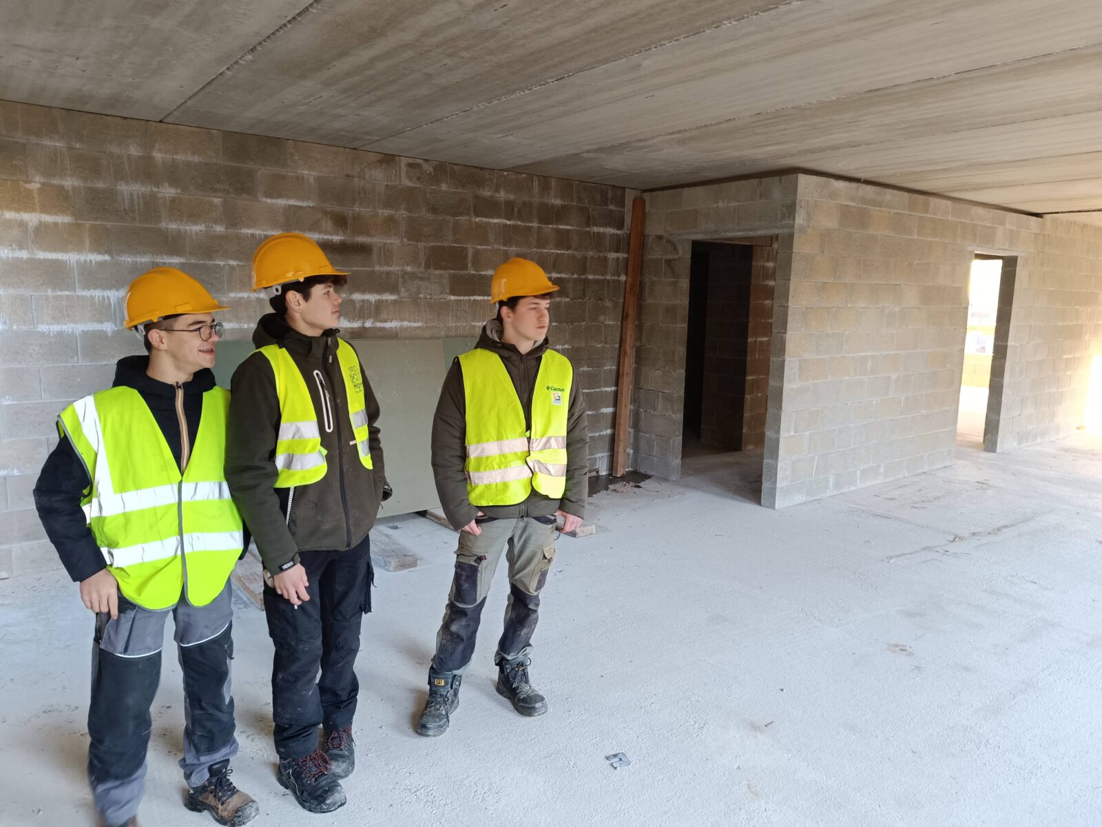 Le premier chantier était celui d’une résidence, chantier en cours de finitions. Les élèves ont ainsi pu se familiariser avec les notions de parachèvements dans le bâtiment.