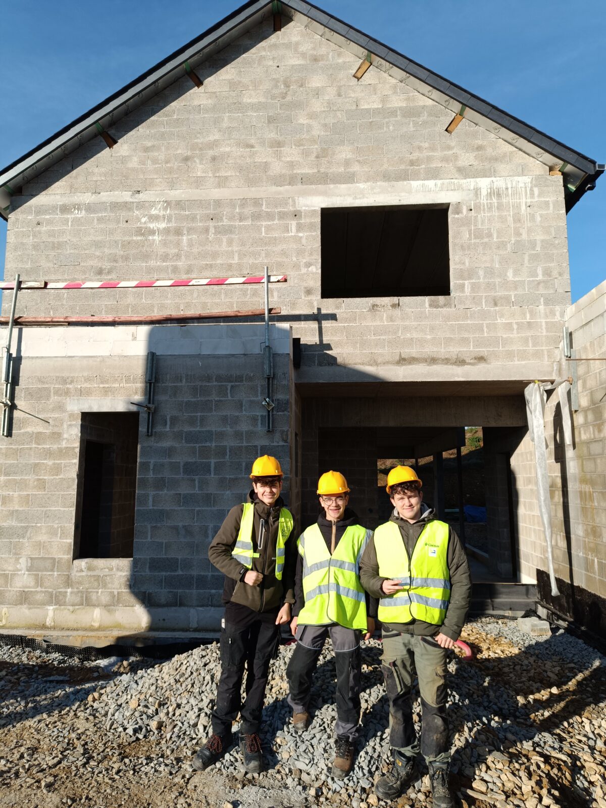 En deuxième lieu, place à une maison unifamiliale. Les plans ayant été mis à la disposition des jeunes, ils ont pu mettre en relation leur lecture avec la construction et ses détails au gré de l’avancement.