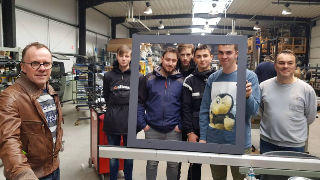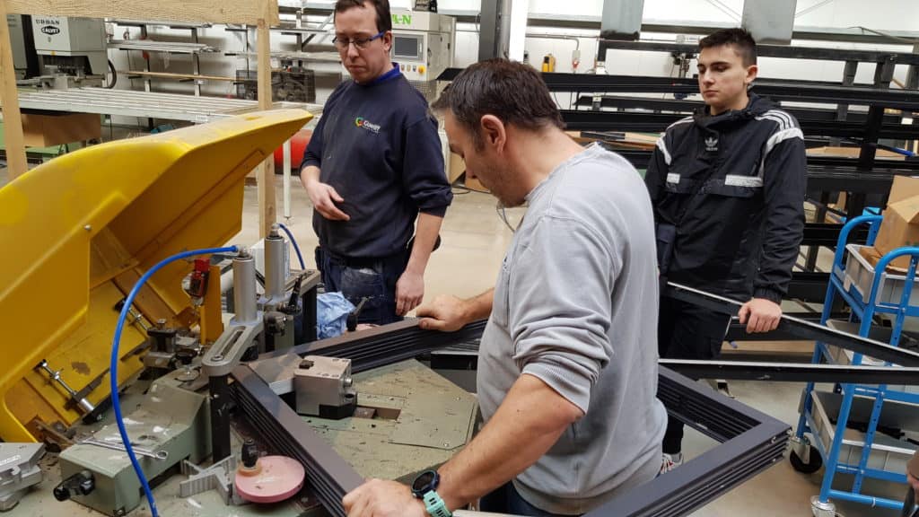 Ce mardi 12 février, les élèves de 5P. menuiserie ont visité la menuiserie Guelff . Ils ont pu assister à la construction d’un châssis alu au sein de la menuiserie.