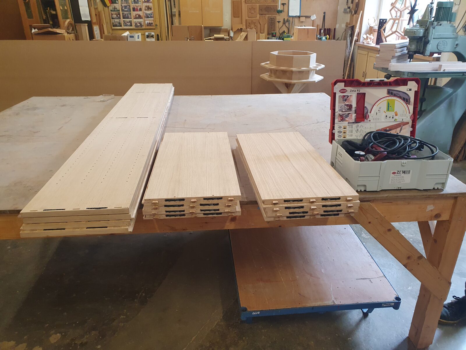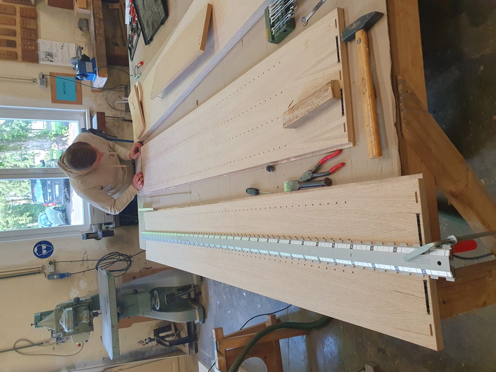 Afin de répondre à une demande d’un client qui souhaitait une bibliothèque spécifique, les élèves de la classe de 7° création et restauration de meubles ont conçu et réalisé deux meubles démontables avec des tablettes amovibles et réglables en profondeur pour le rangement de livres de toutes les dimensions.
