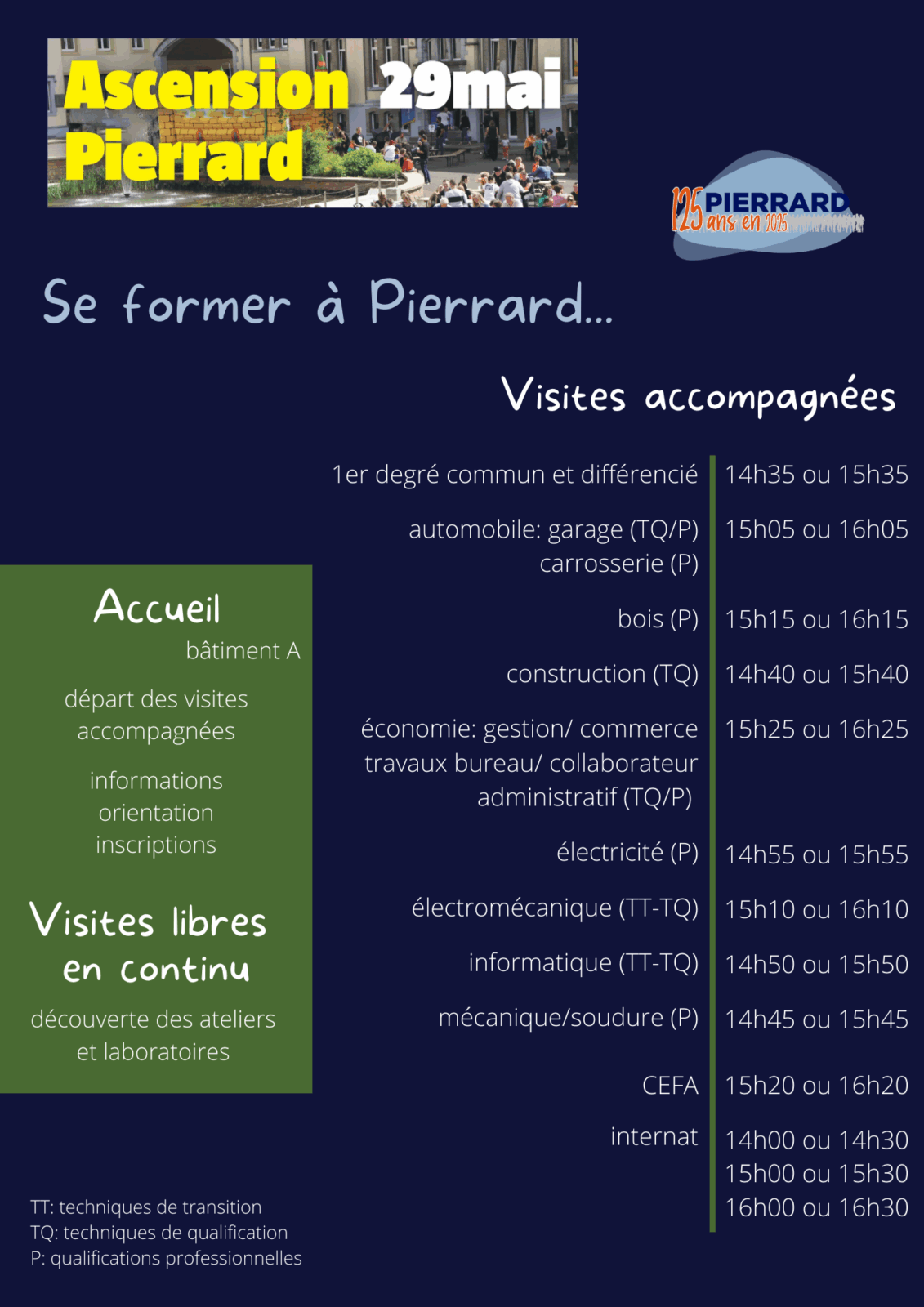 - Visites guidées par thème (internat, options)