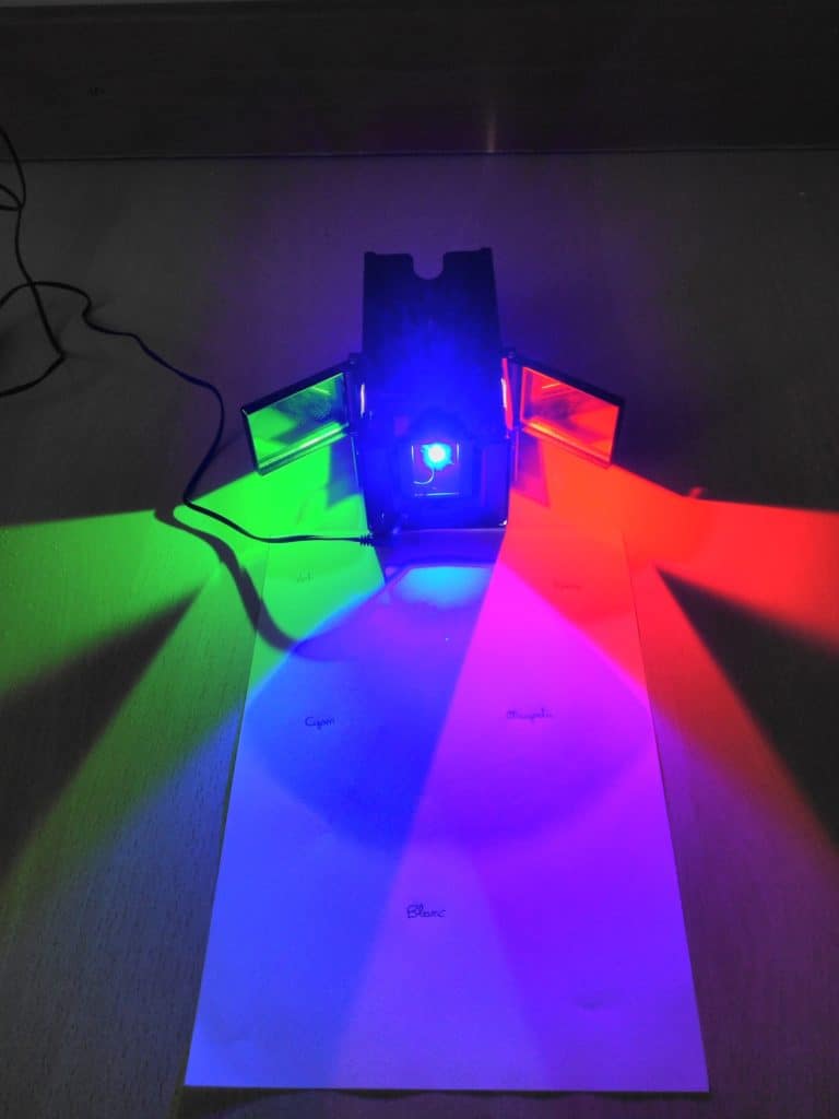 Cet atelier propose de découvrir les couleurs obtenues par mélange de lumière et de peinture.