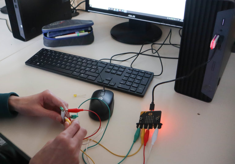 Dans le cadre de leur cours de programmation, les 3TTi ont réalisé un feu de signalisation routière où la LED rouge s’allume pendant 4 secondes, puis s’éteint et la LED verte s’allume pendant 4 secondes et s’éteint à son tour…