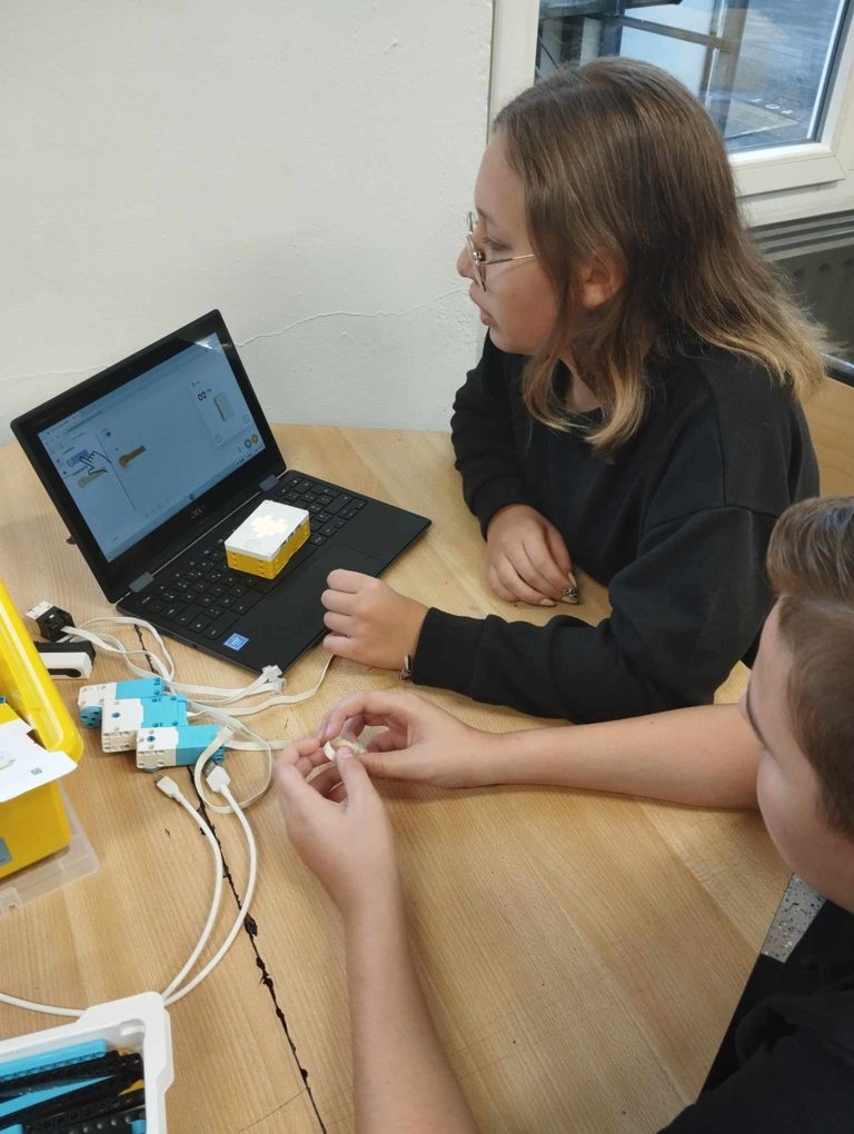Dans le cadre de leur activité complémentaire “électromécanique”, les élèves de 2e commune ont participé à une formation d’introduction à la programmation via “Spike” donnée par Technobel.